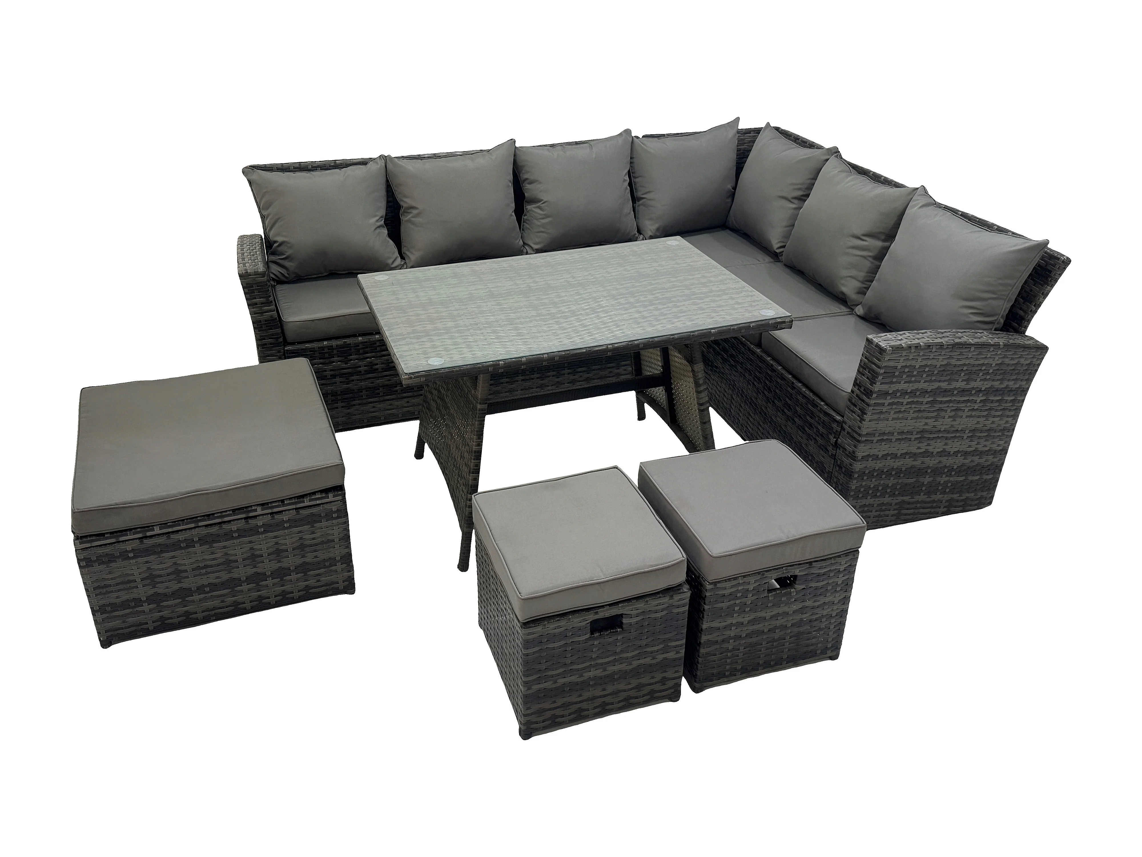 Hochlehniges Rattan-Ecksofa Set Esstisch Möbel Dunkelgrau Gemischt