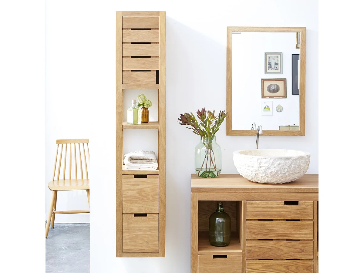 Hochschrank aus Eiche 30 cm Wandbefestigung Hängeschrank Massivholz