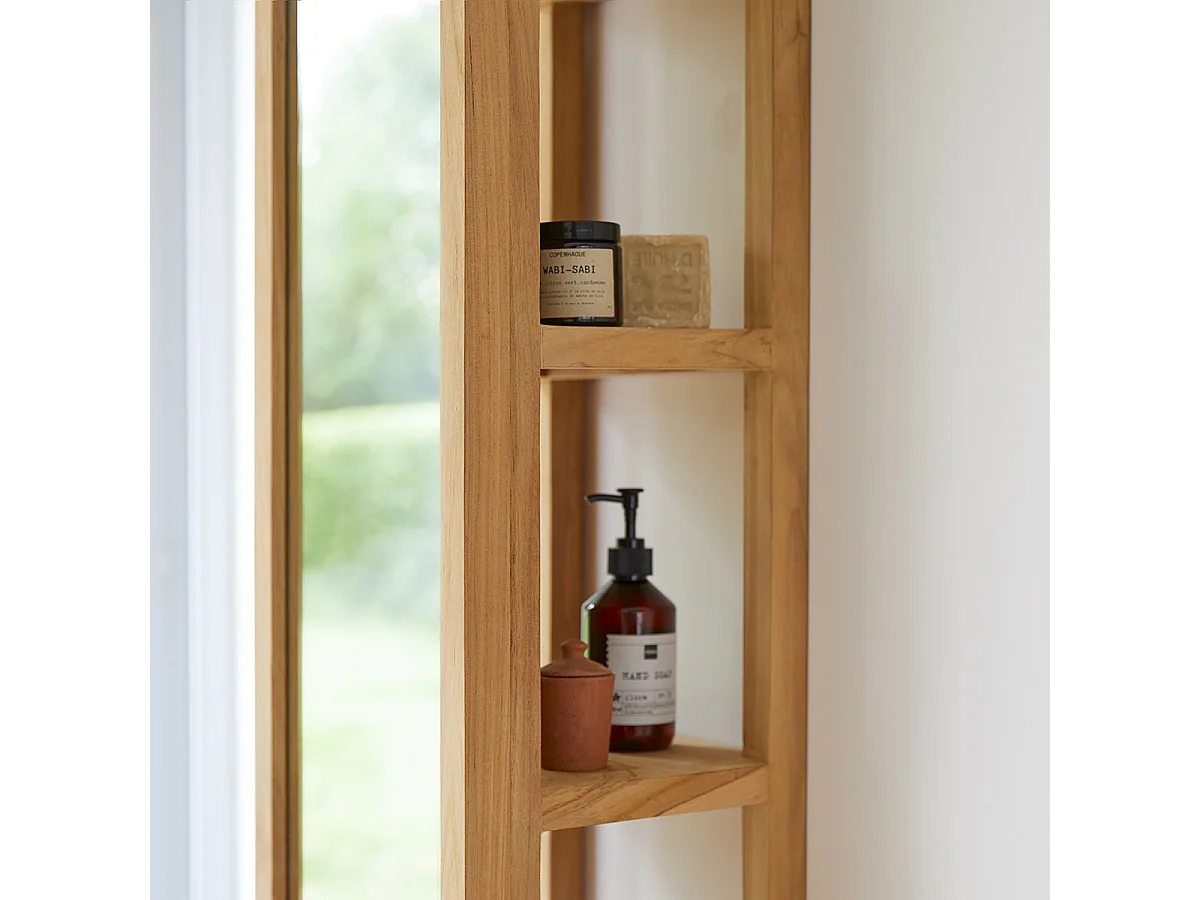 Hochschrank Badezimmerschrank Wandschrank 170 cm Spiegelschrank Teak masiv