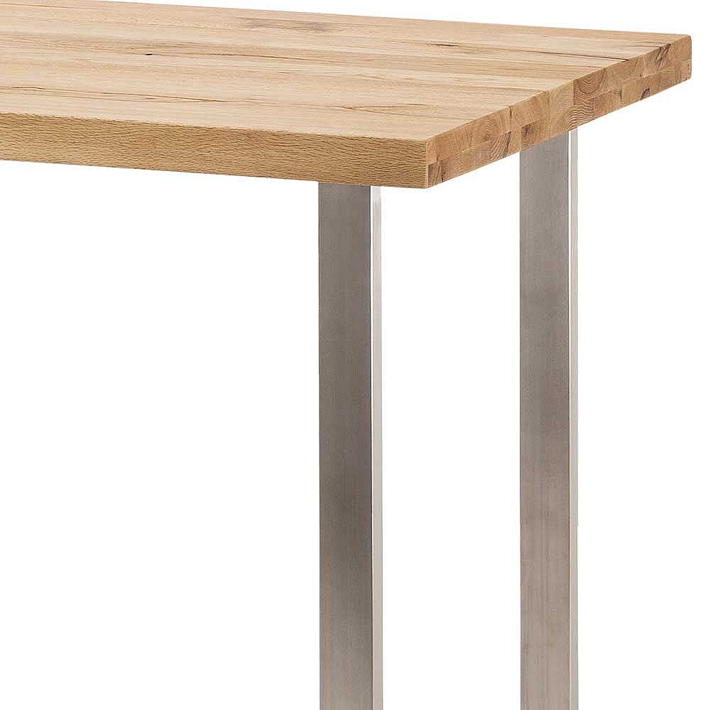 Hochtisch aus Wildeiche Massivholz und Edelstahl 120 cm breit