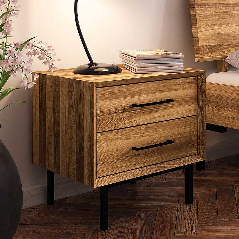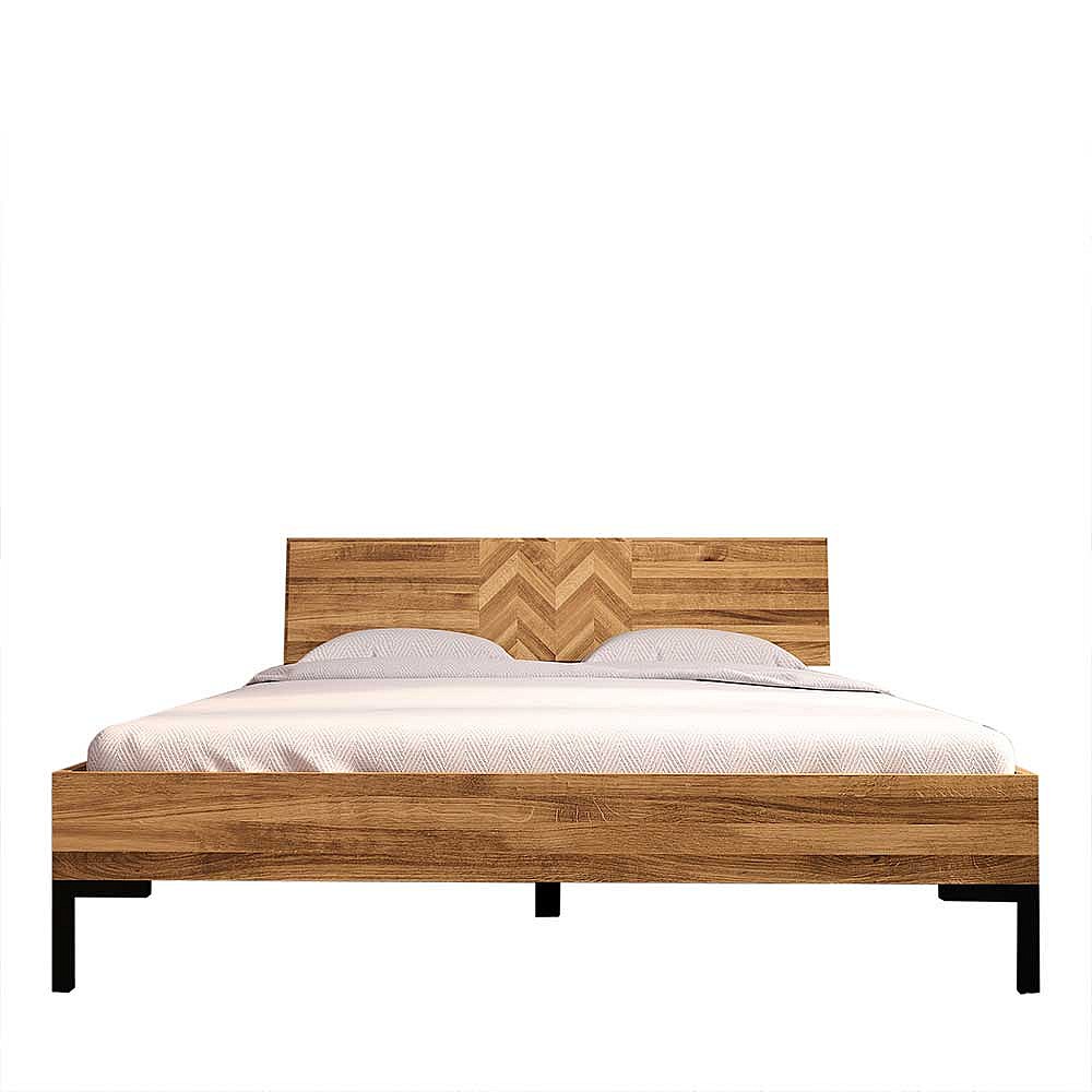 Hochwertiges Holzbett aus Wildeiche Massivholz Vierfu�gestell aus Metall