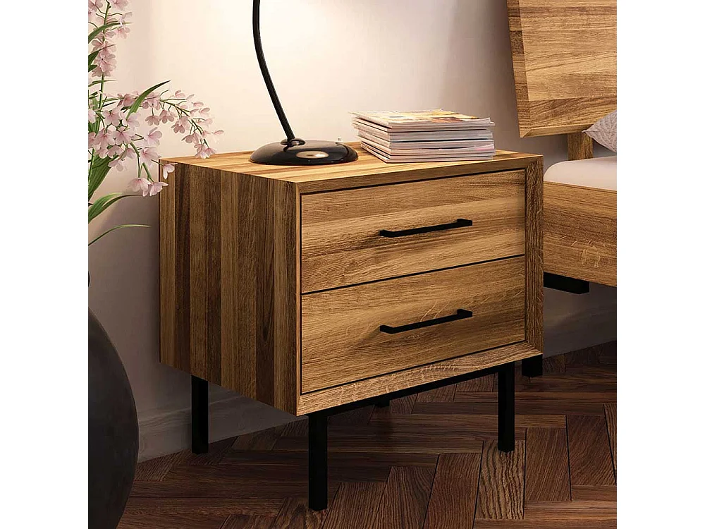 Hochwertiges Holzbett aus Wildeiche Massivholz Vierfußgestell aus Metall