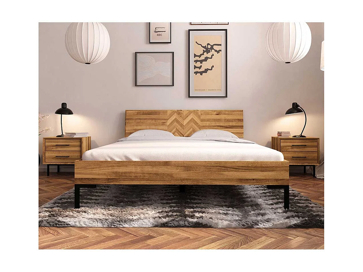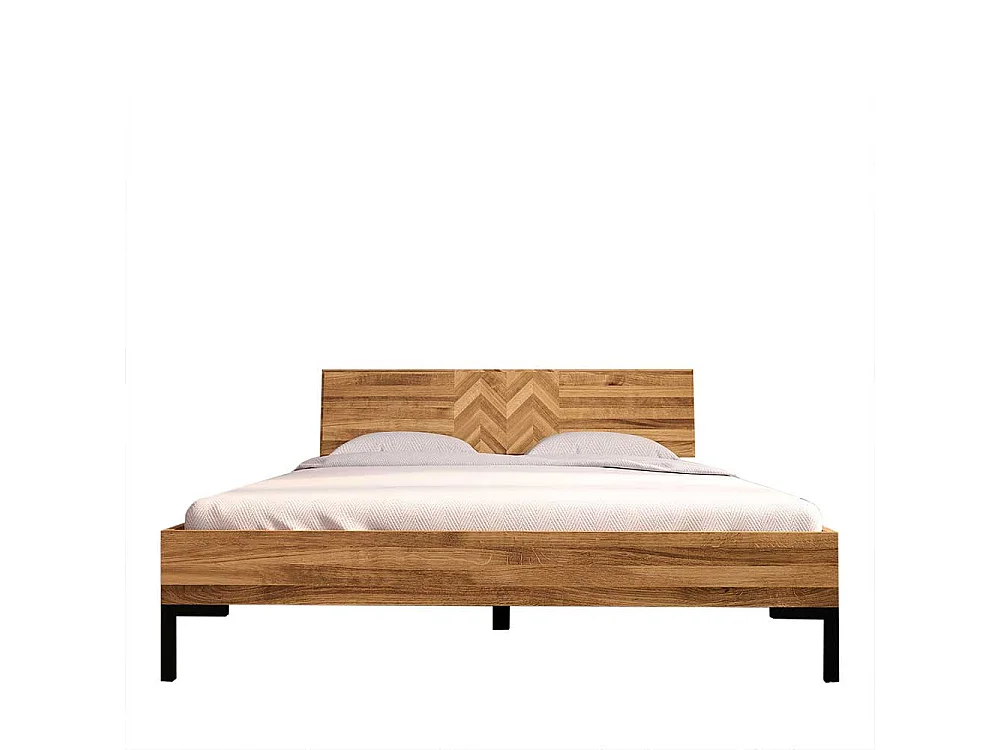 Hochwertiges Holzbett aus Wildeiche Massivholz Vierfußgestell aus Metall