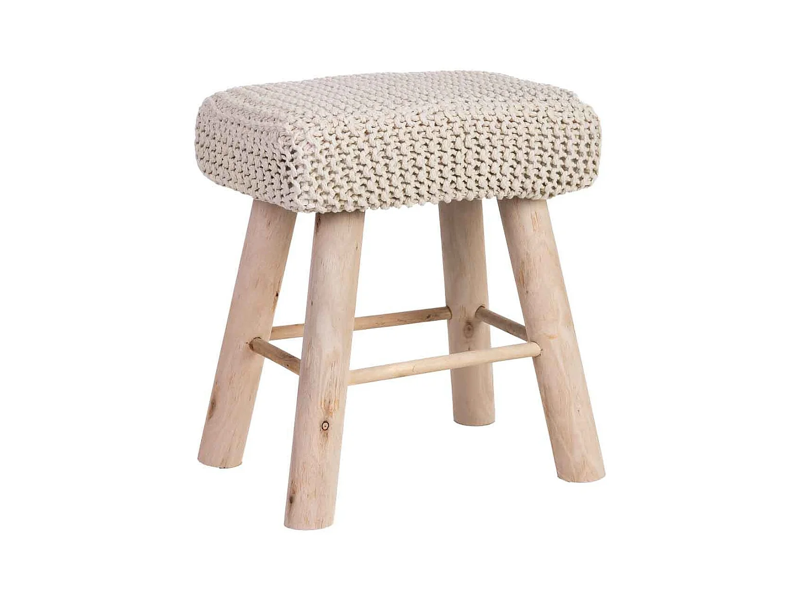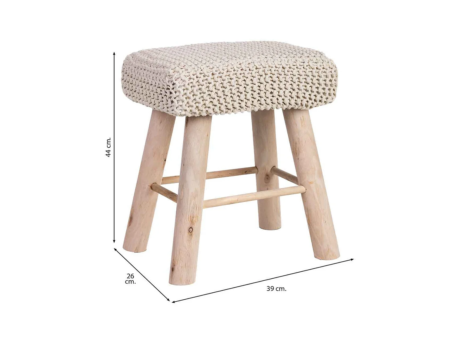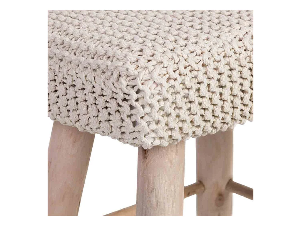Weißer Hocker aus gewebter Baumwolle und Holz, 26x39x44H cm