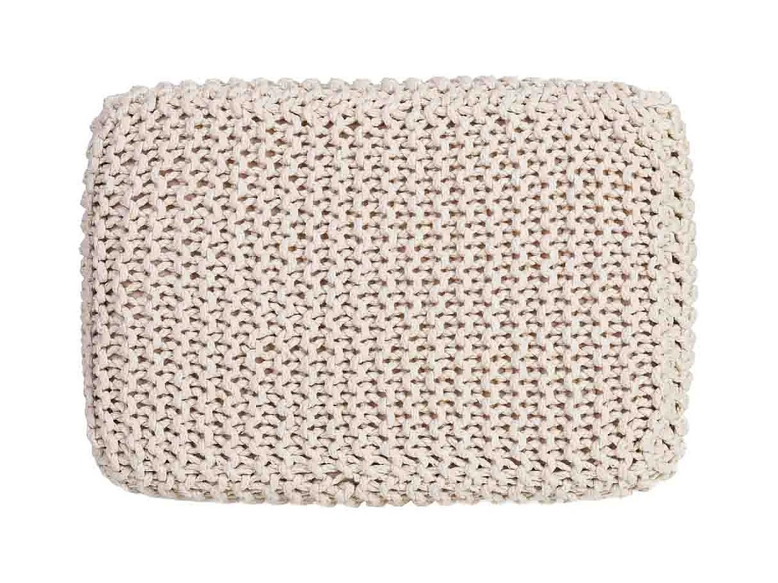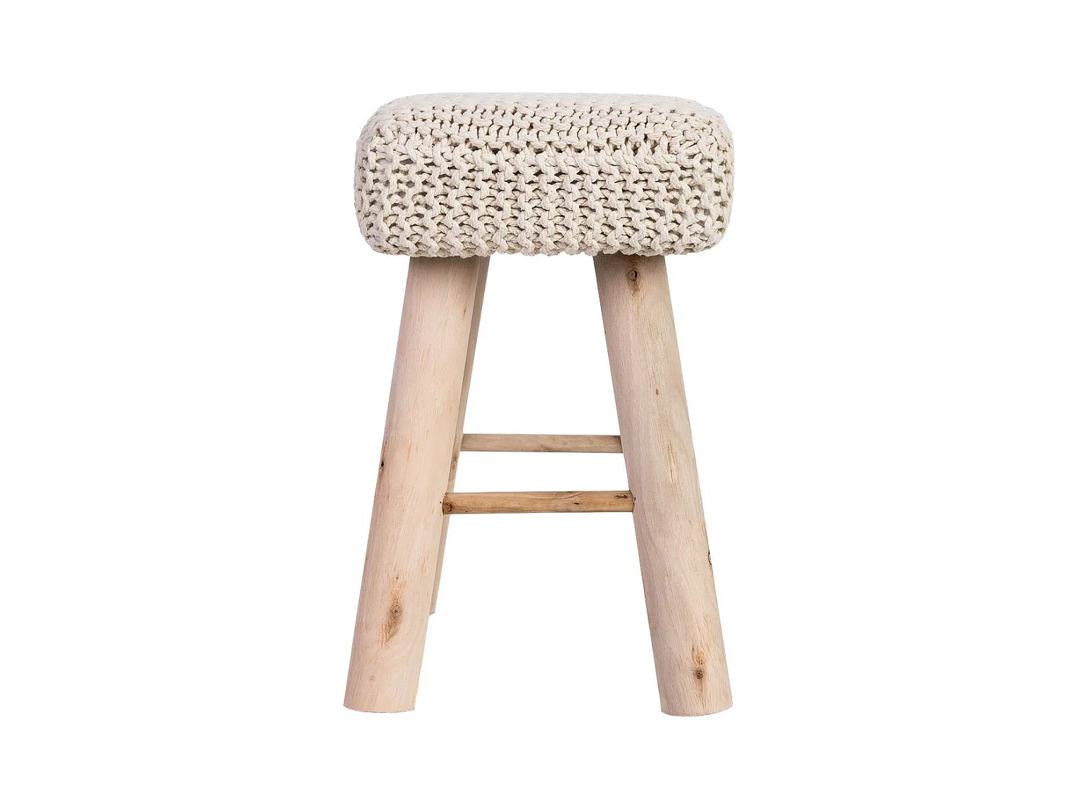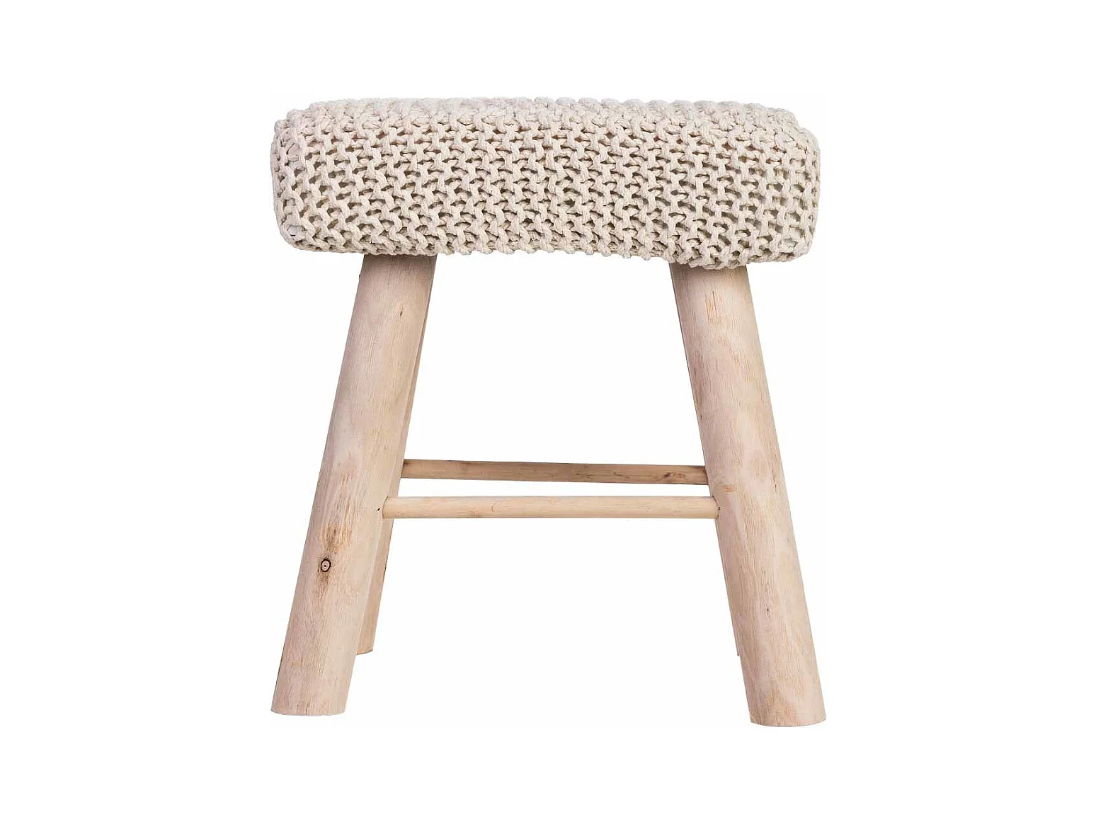 Weißer Hocker aus gewebter Baumwolle und Holz, 26x39x44H cm