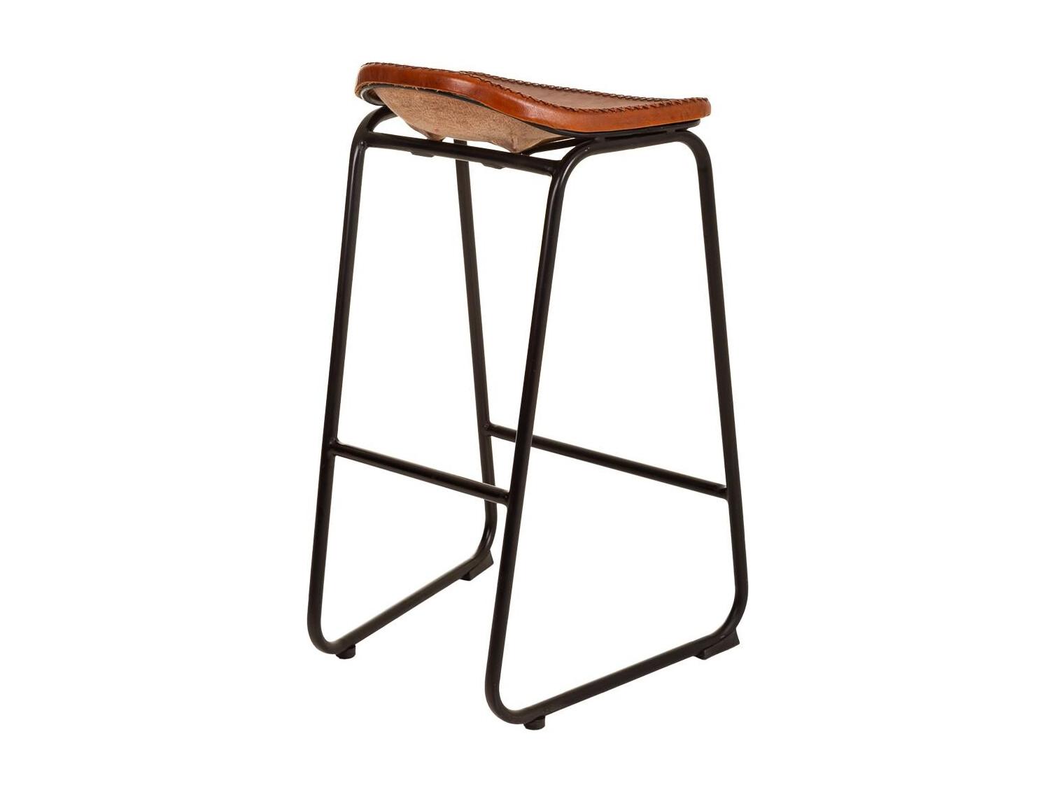 Hocker aus Metall und braunem Leder, 46x46x80h cm