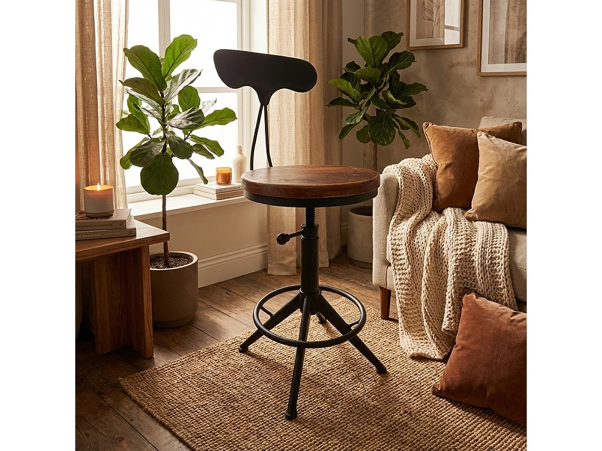 Hocker drehbar verstellbar im Vintage-Stil mit Rückenlehne Crewi Back