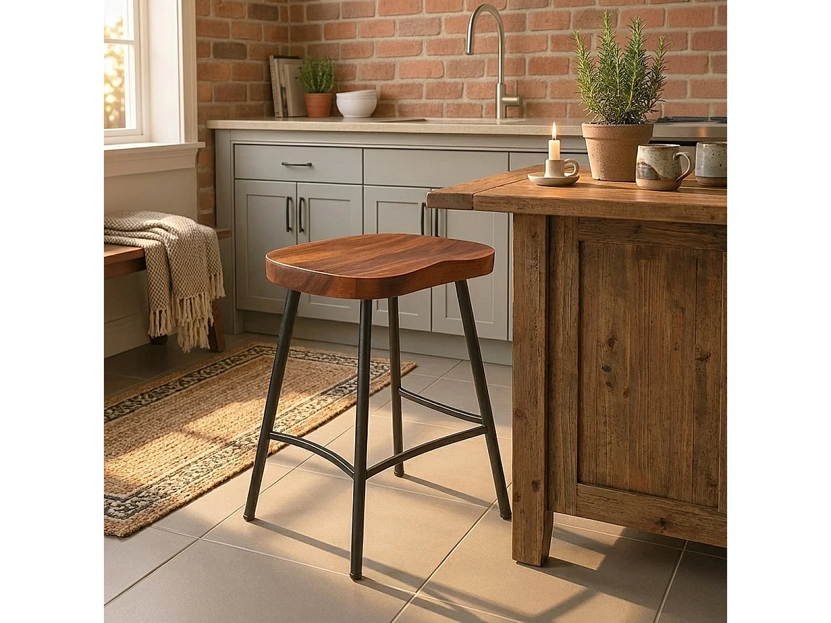Hocker Industriell aus Holz und Metall für Küchen-Halbinsel Lumax