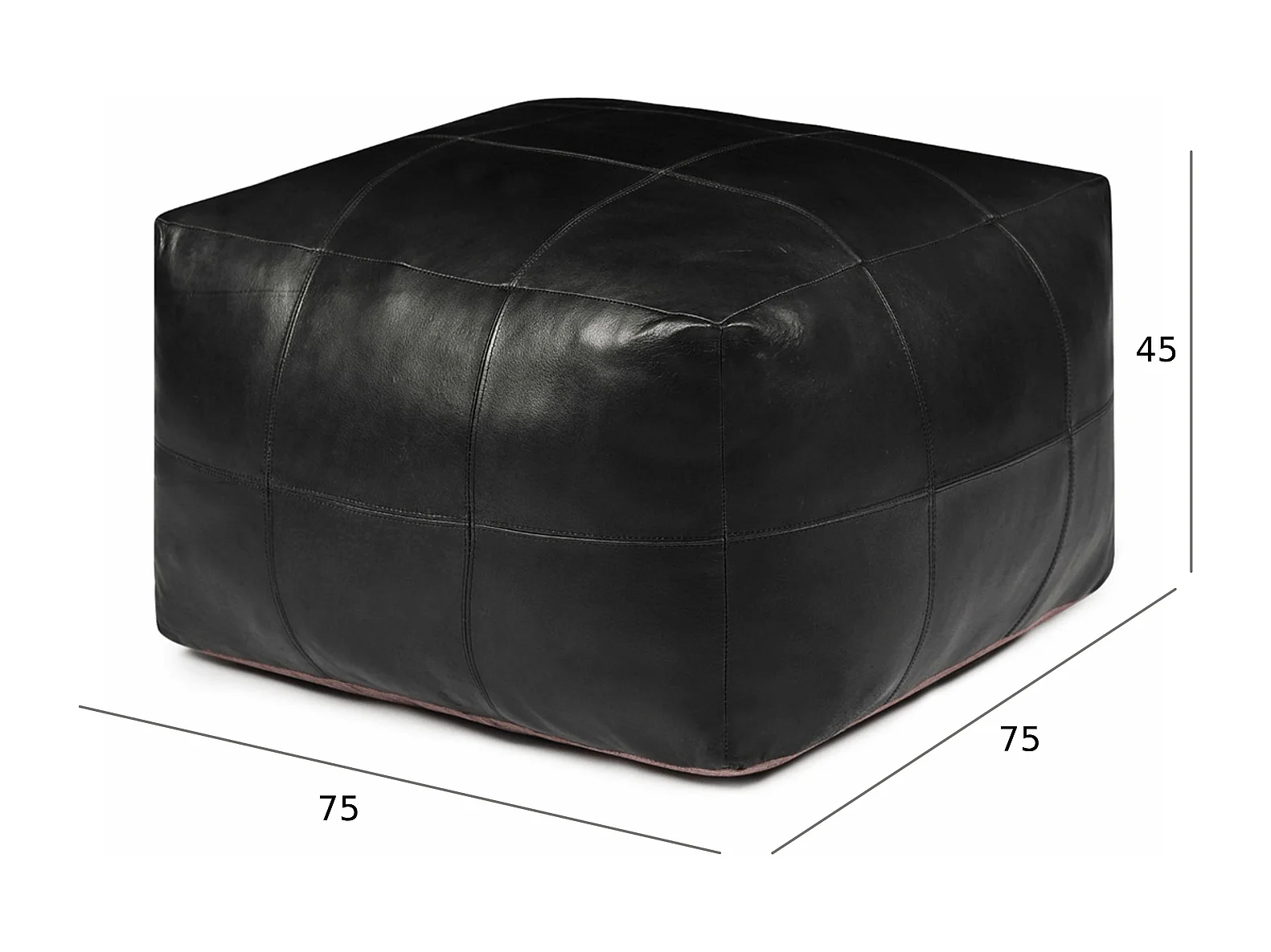 Hocker Pouf B75xT75xH45 Tenna - Leder & Baumwolle - Schwarz