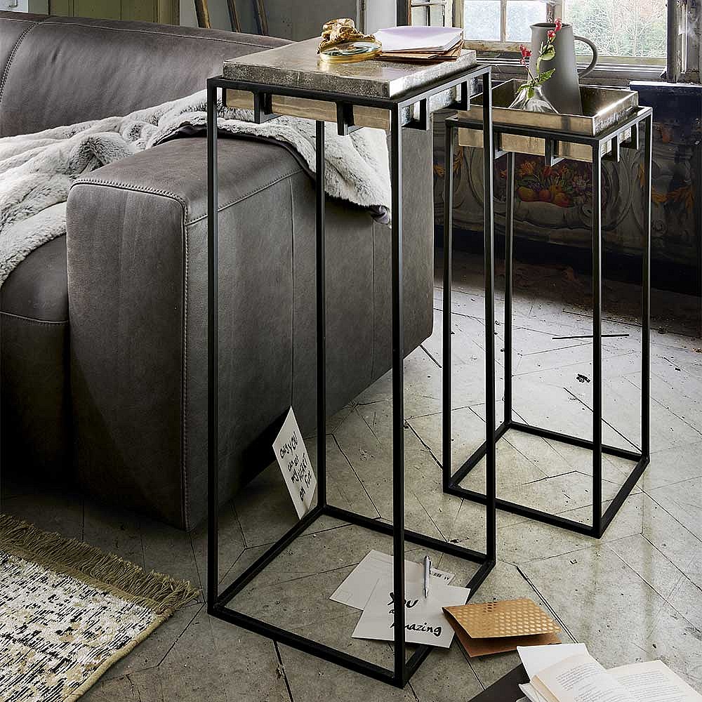 Hohe Beistelltische aus Metall abnehmbarer Platte (zweiteilig)