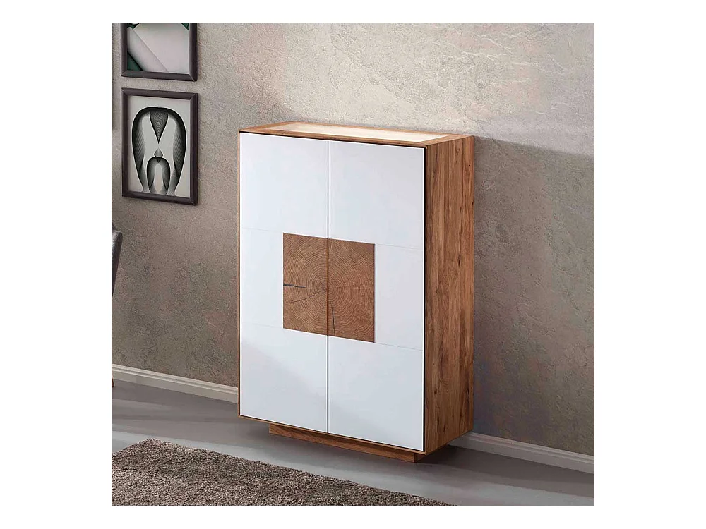 Hohe Kommode in Weiß Wildeiche Massivholz