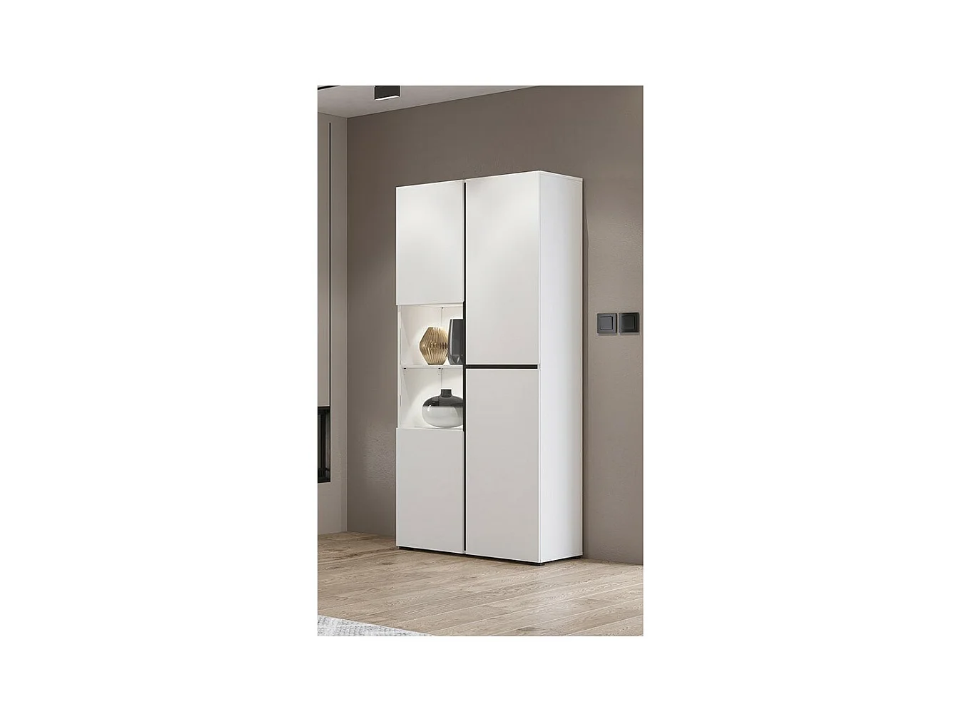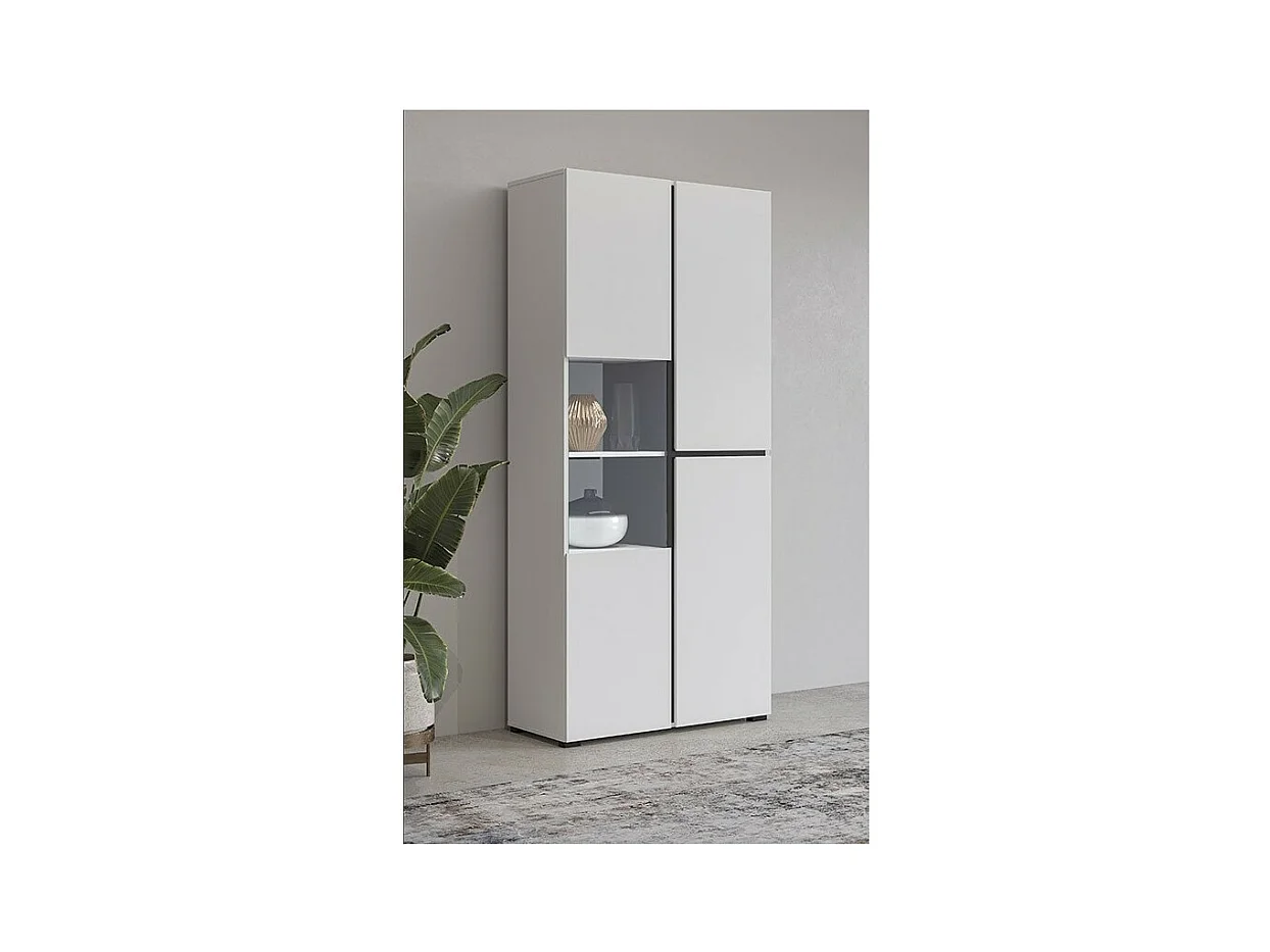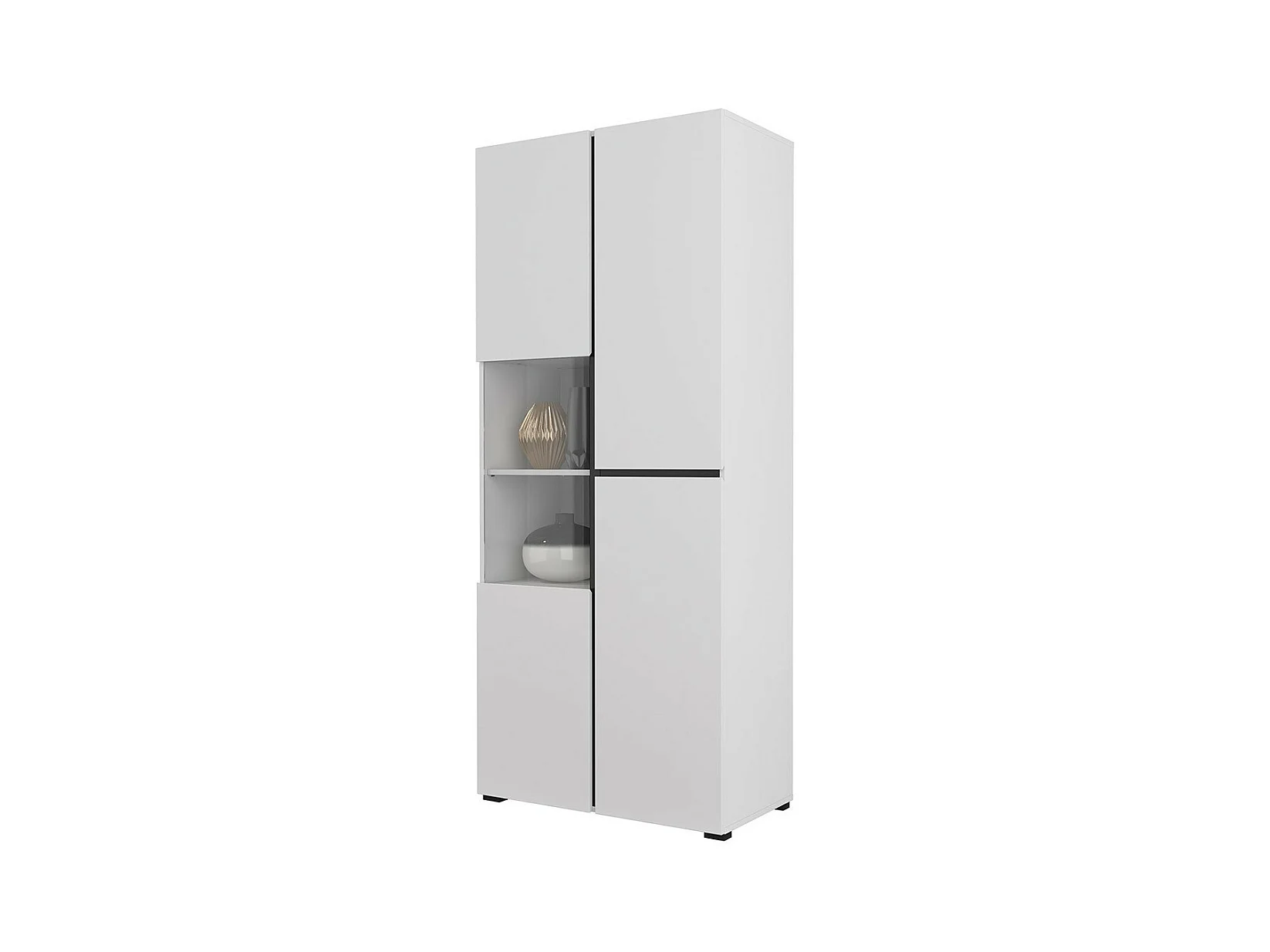 Vitrine hoch mit 2 Türen aus der Kollektion HAVANA. Farbe weiß und schwarz.