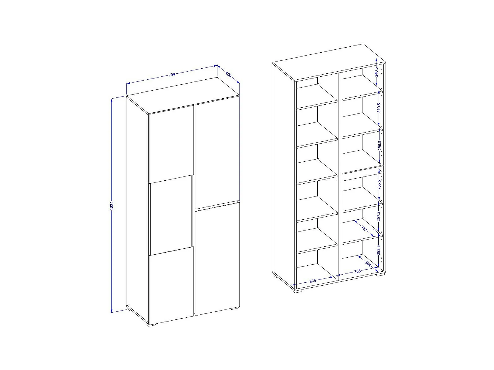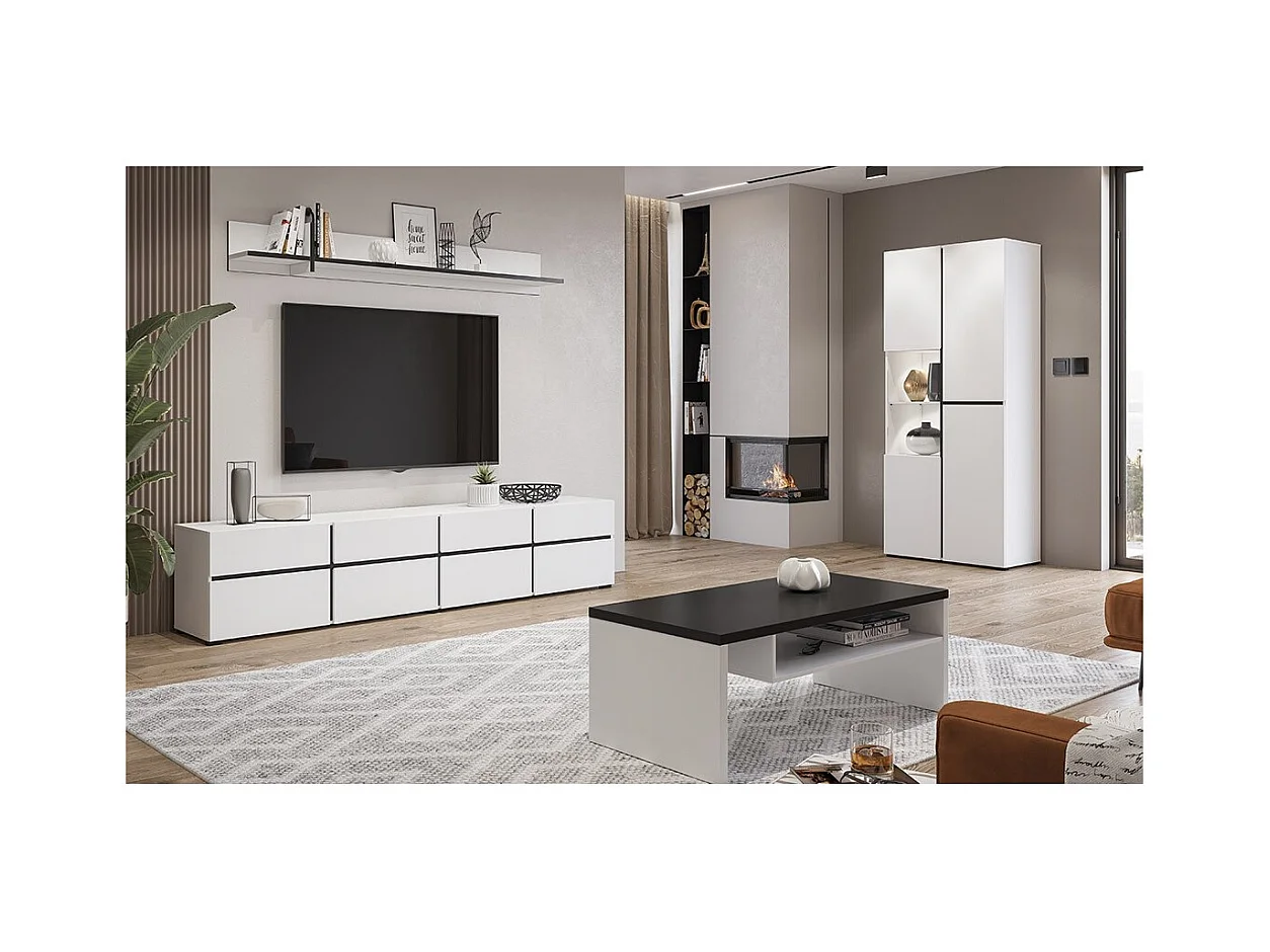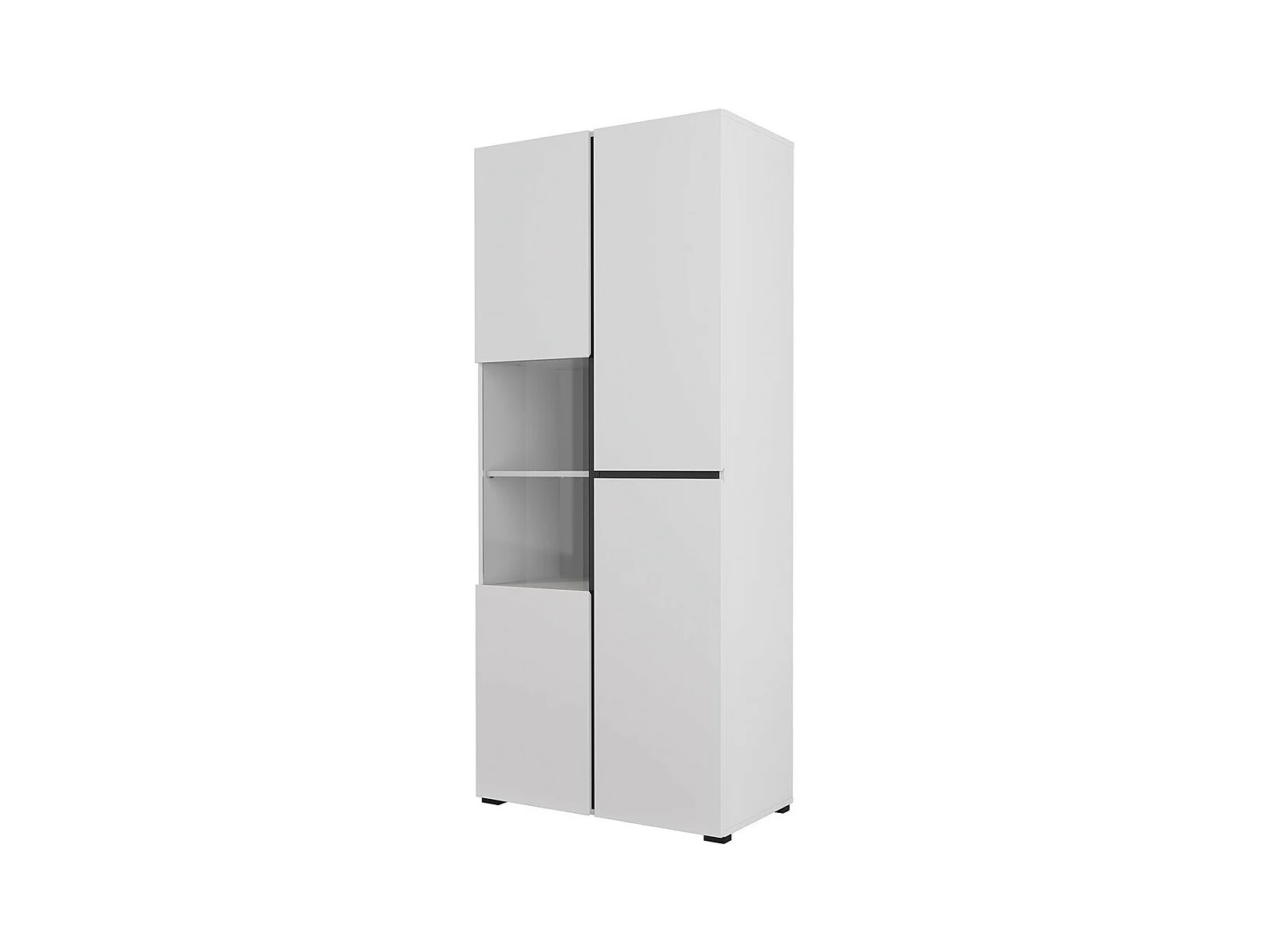Vitrine hoch mit 2 Türen aus der Kollektion HAVANA. Farbe weiß und schwarz.