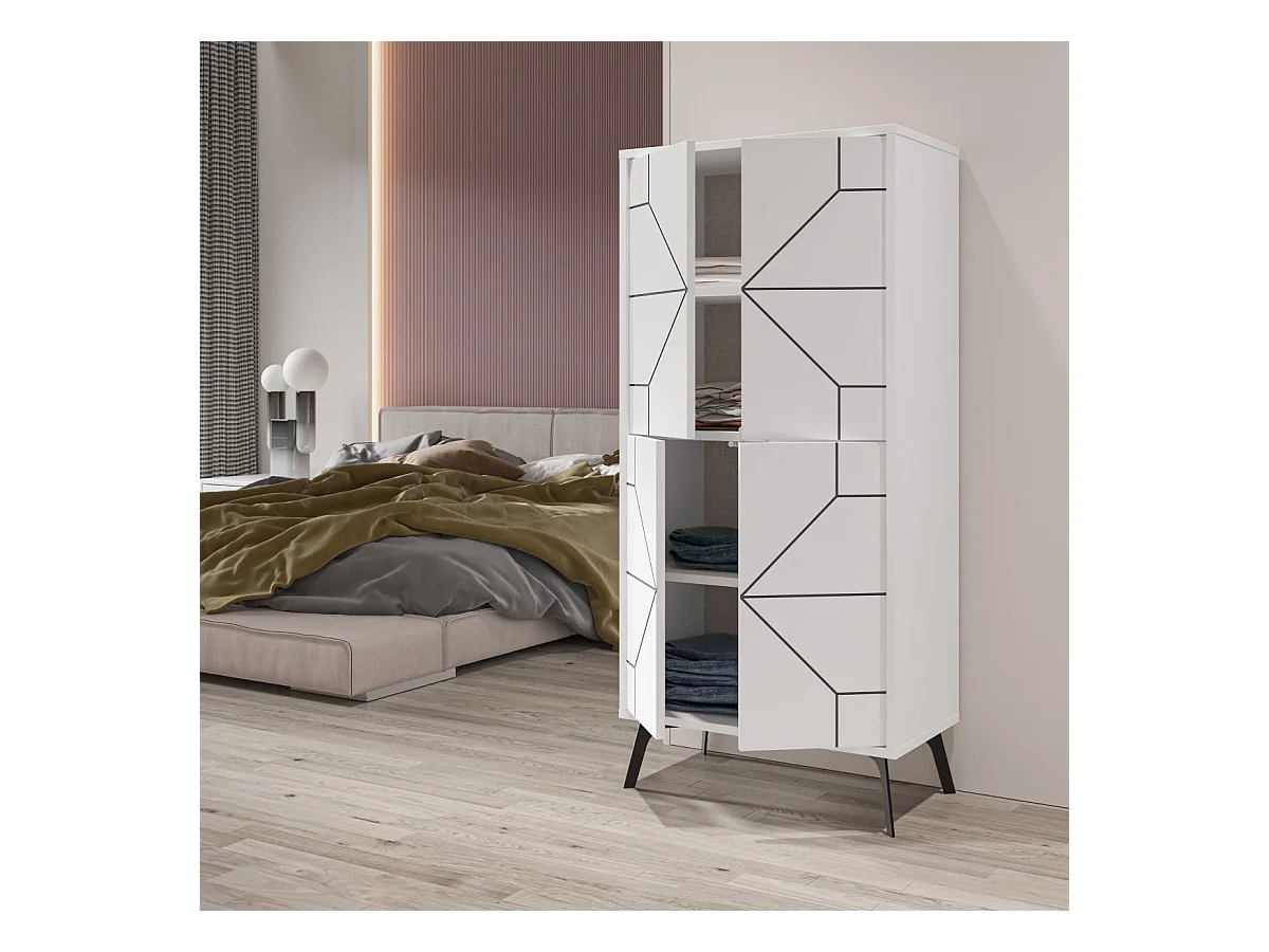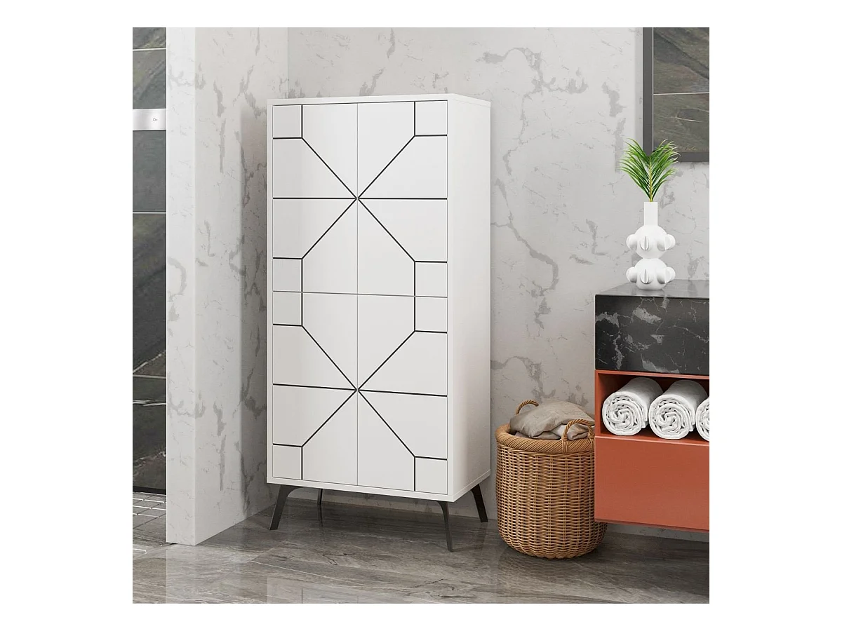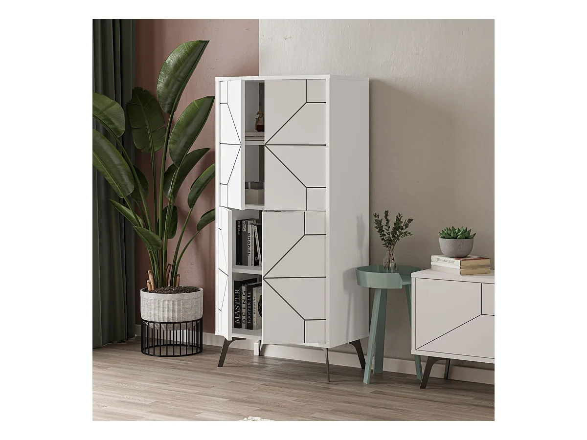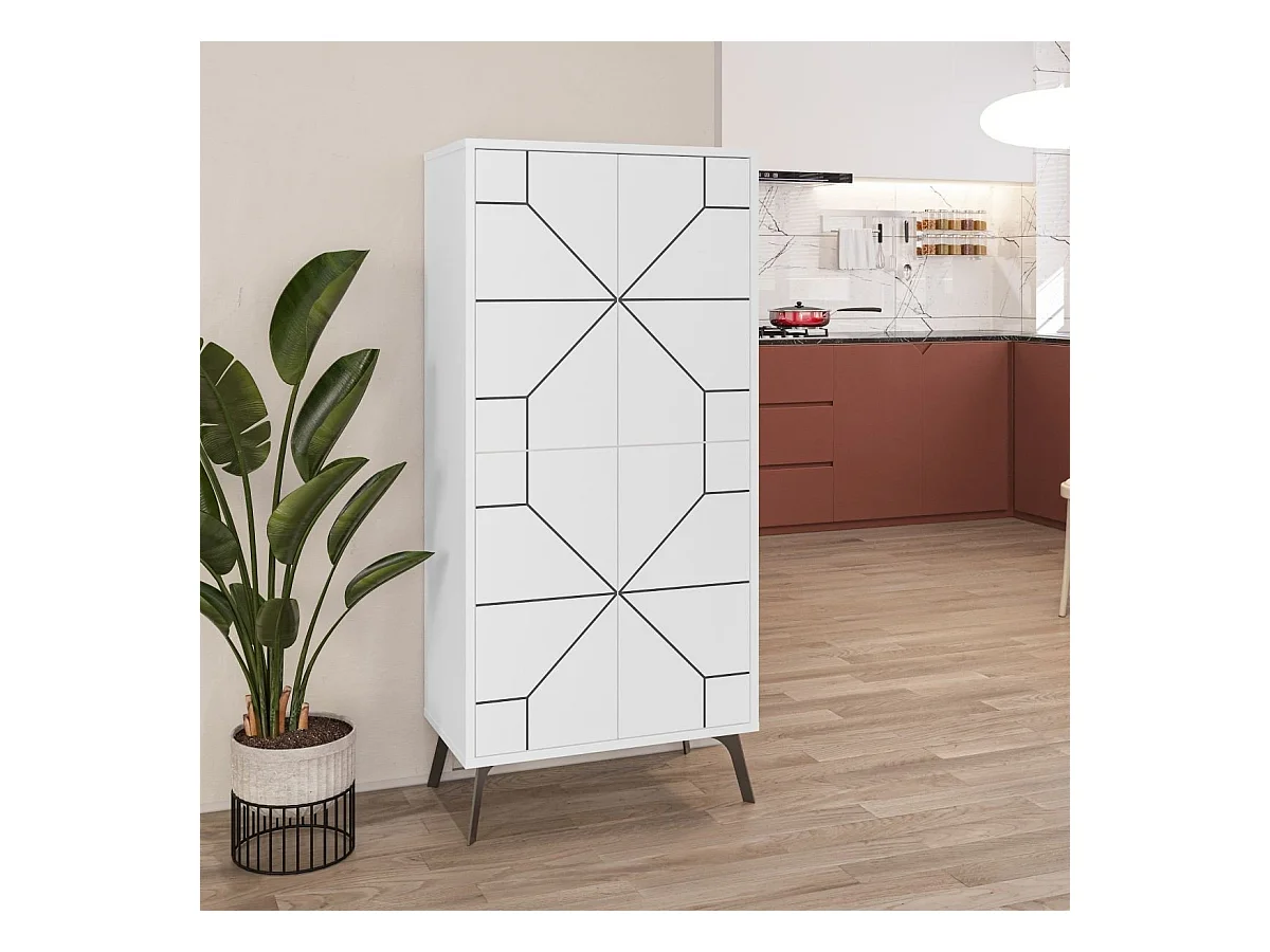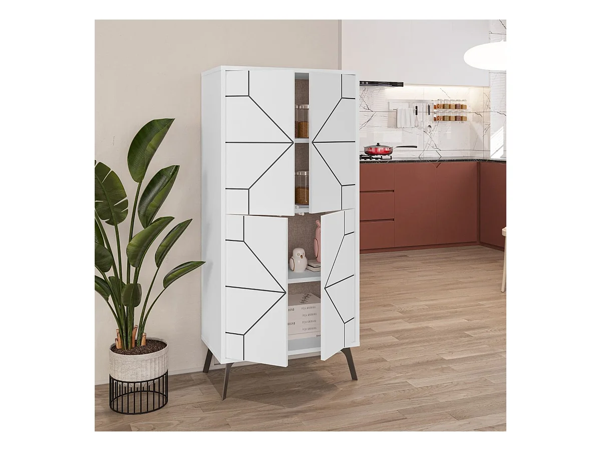 Hoher Buffetschrank mit 4 weißen Türen und schwarzen Dekorationen H136 cm - Dune