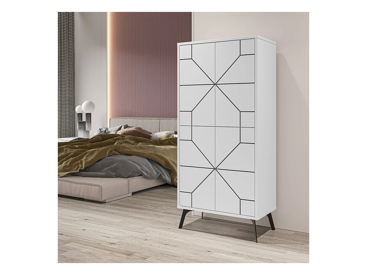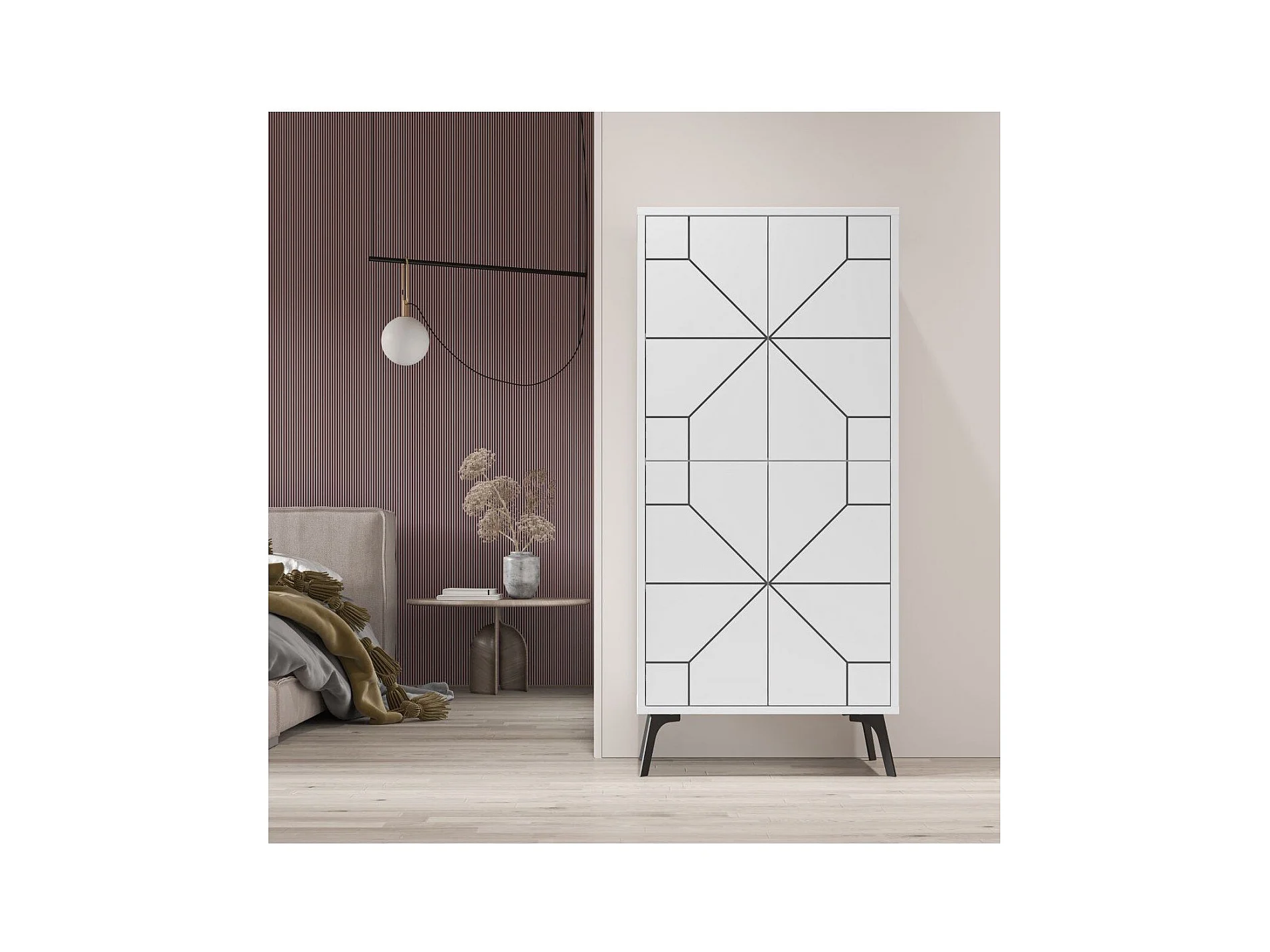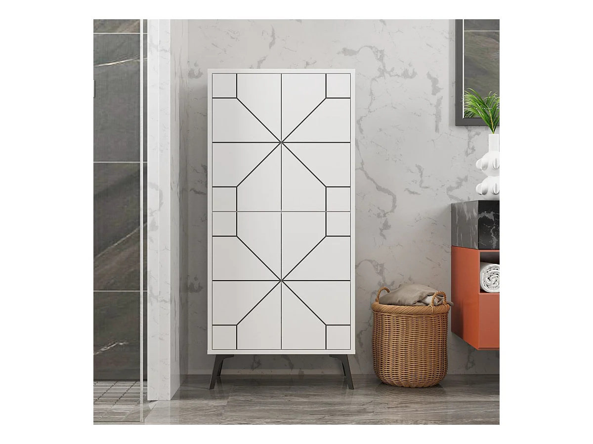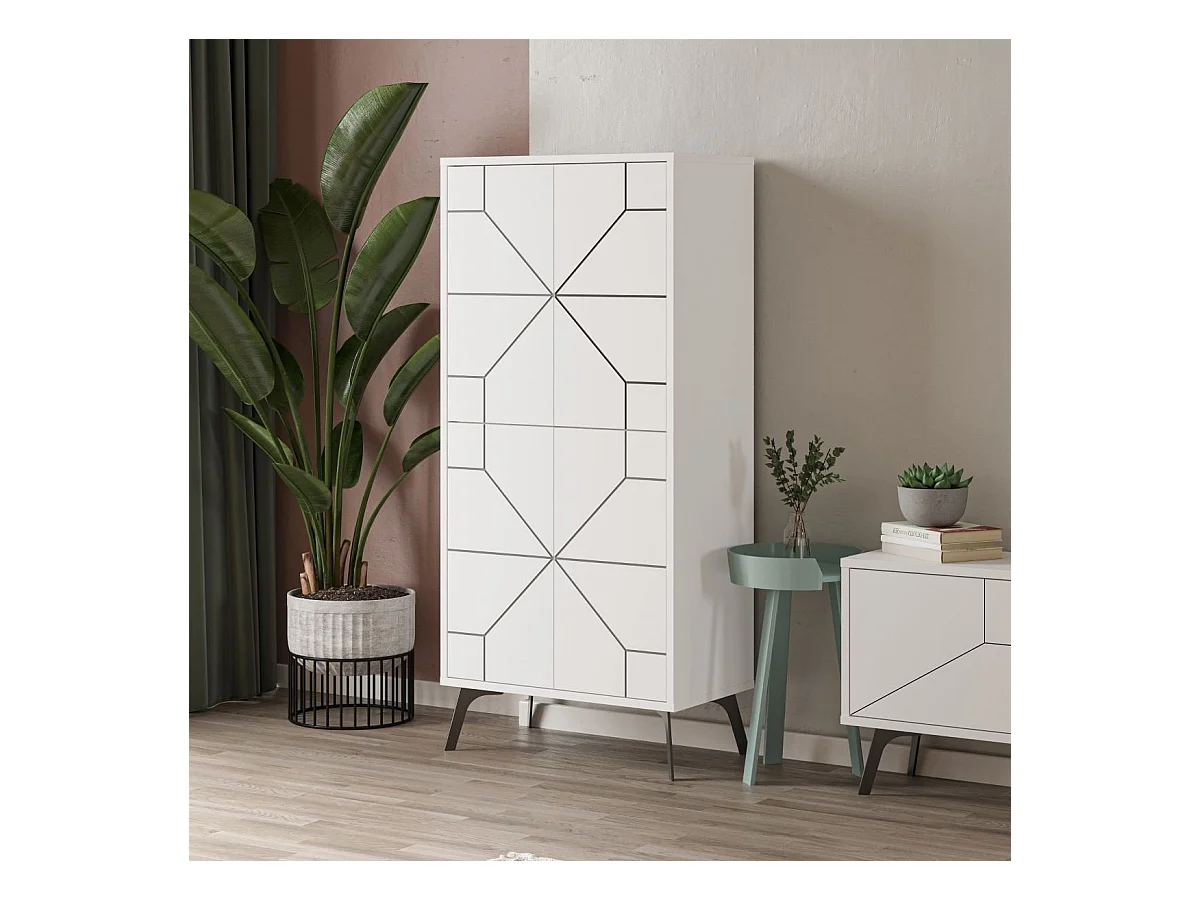 Hoher Buffetschrank mit 4 weißen Türen und schwarzen Dekorationen H136 cm - Dune