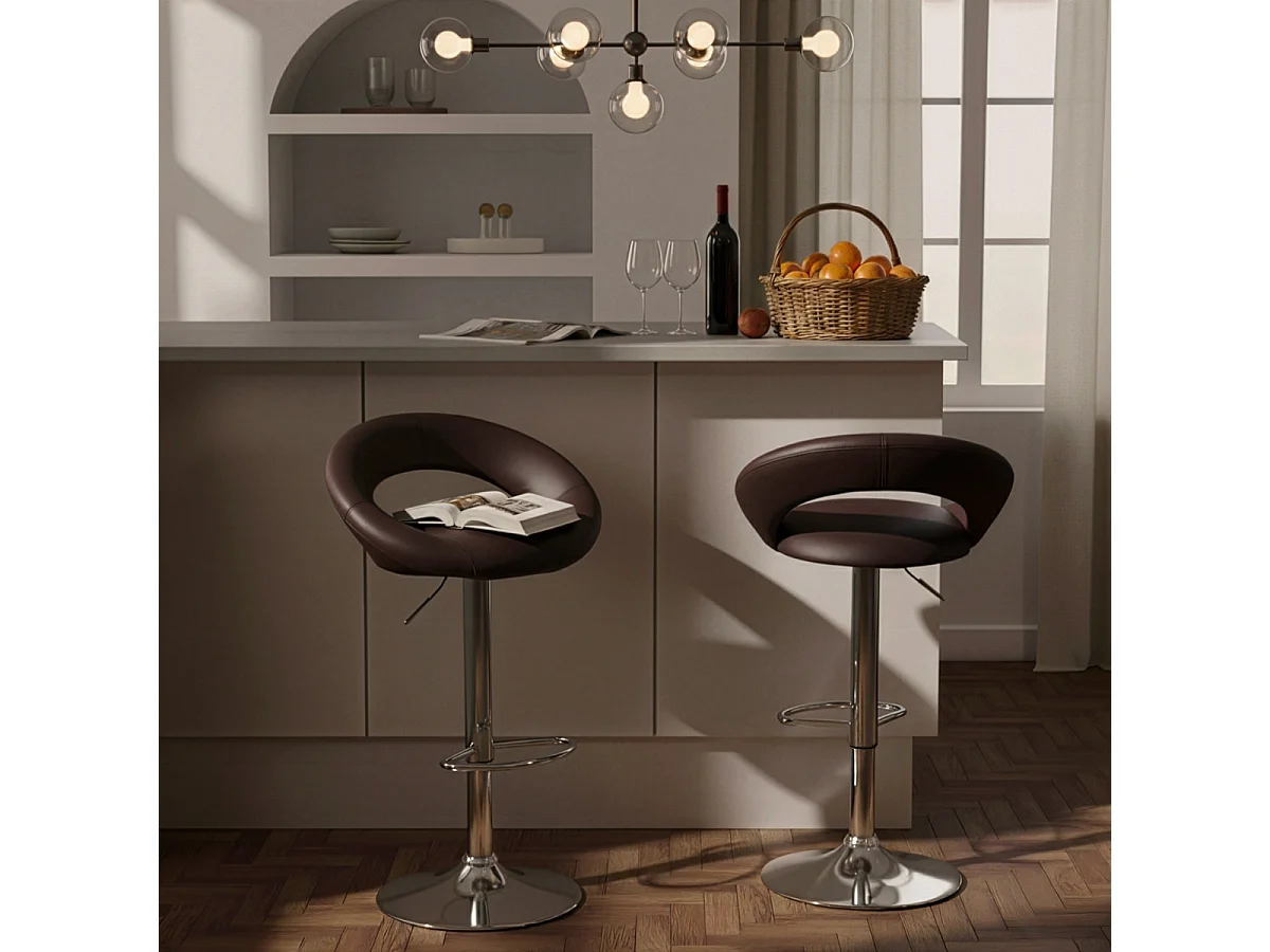 Hoher drehbarer Küchenbarhocker mit verstellbarer Fußstütze Chicago - Braun