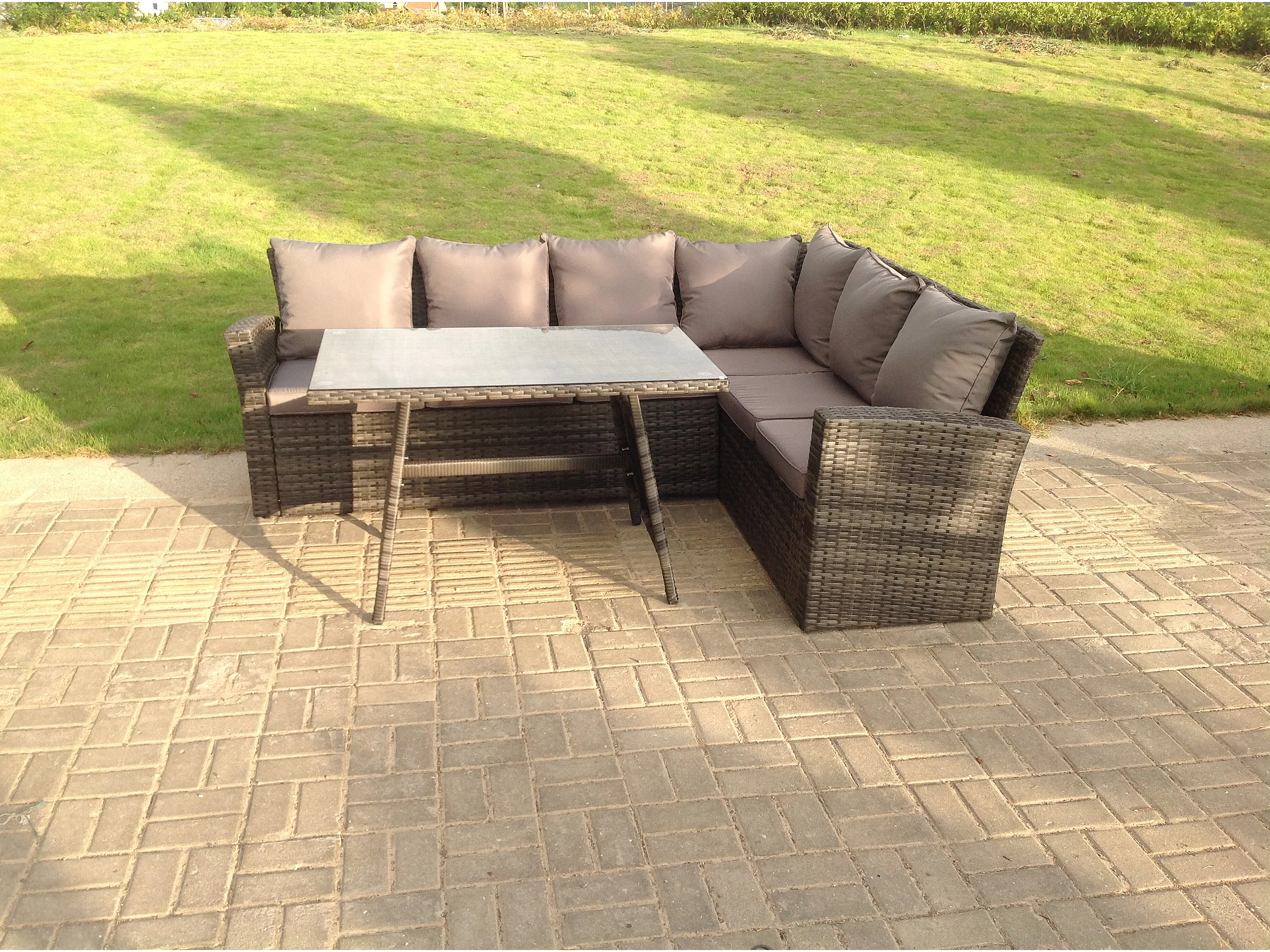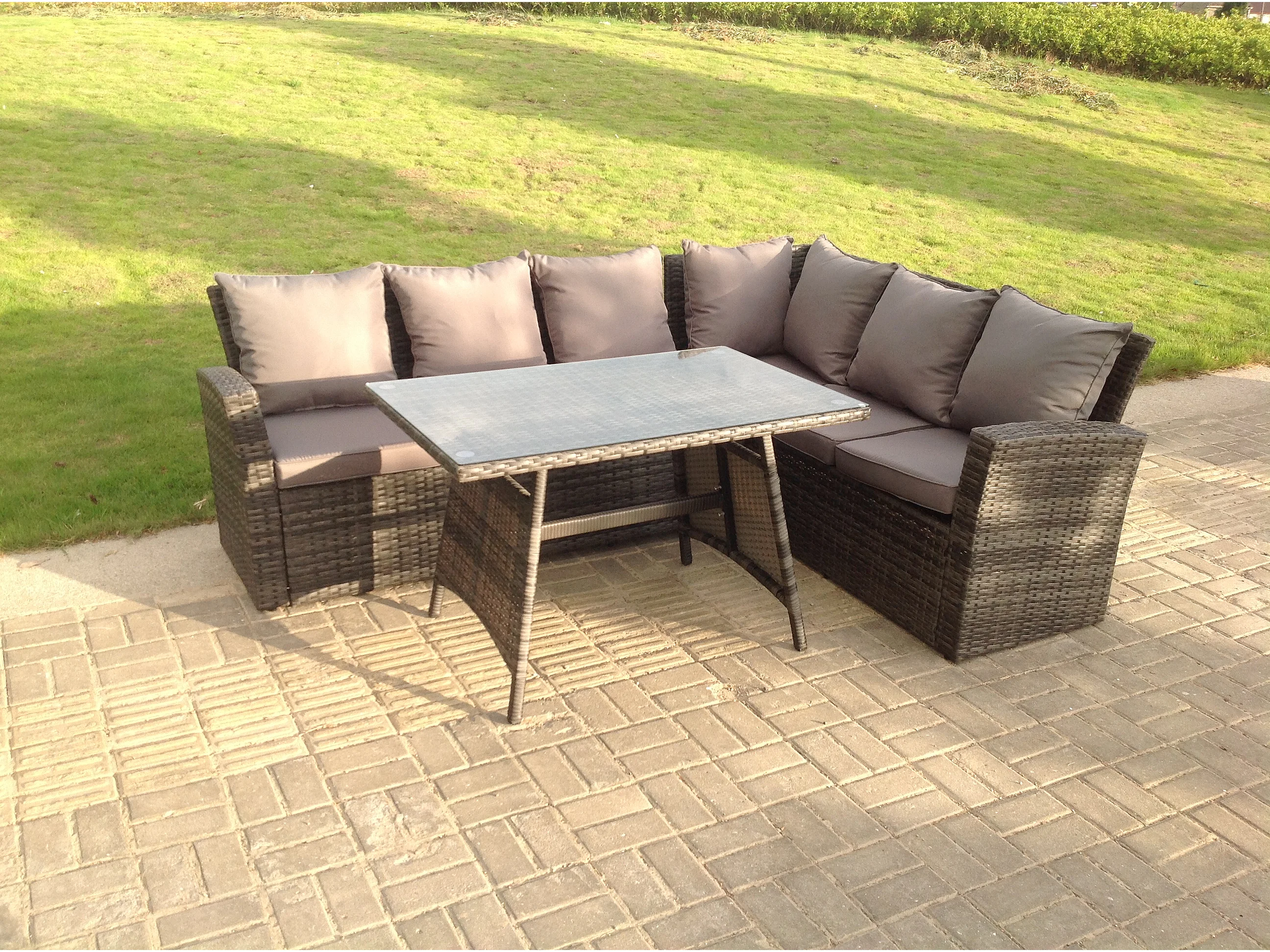 Hoher Rücken Grau Gemischt Gartenmöbel Rattan Ecksofa Set mit Table 6-Sitzer