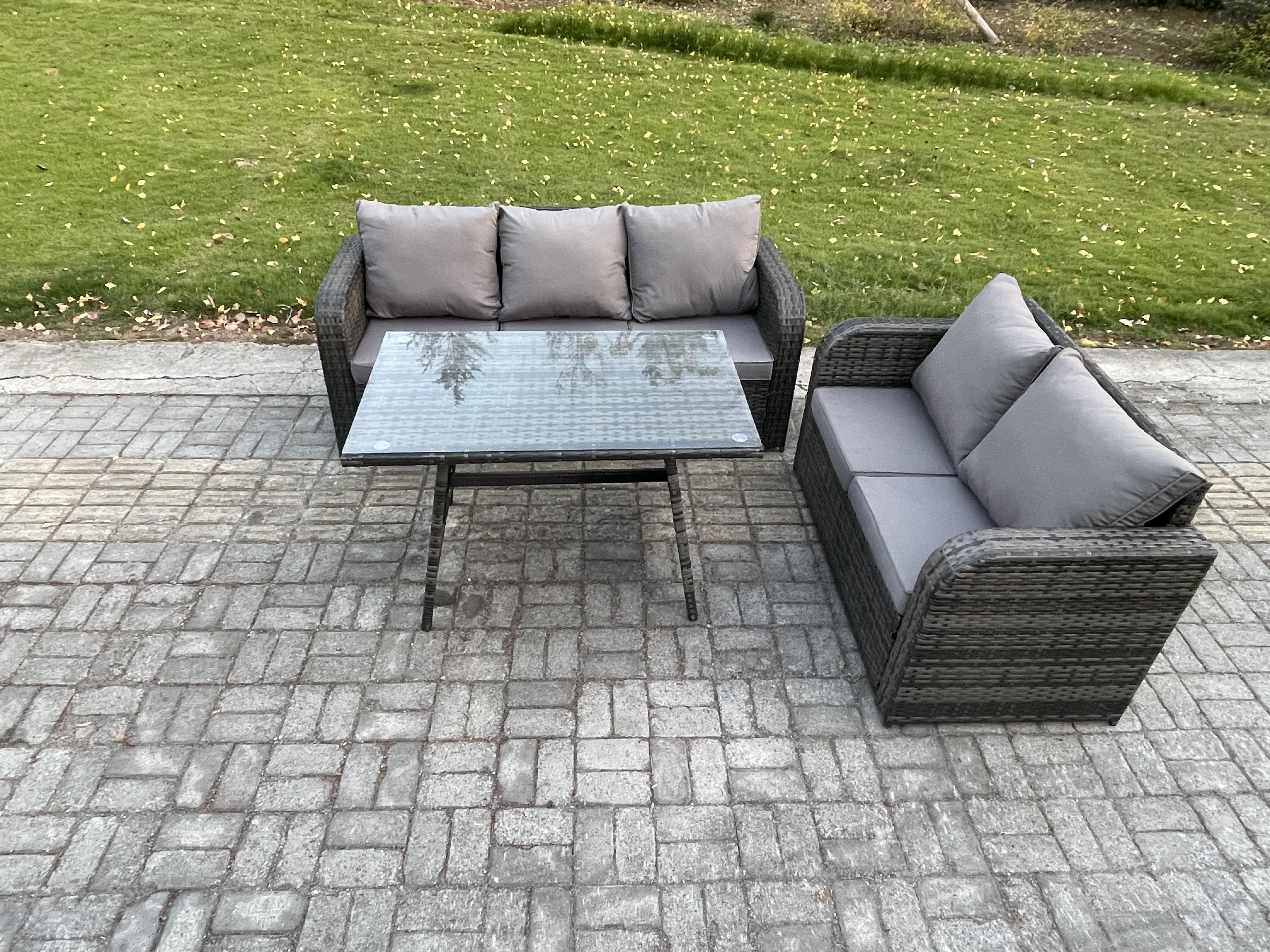 Hoher Rücken Polyrattan Sofa Set Gartenmöbel Esstisch Set Love Sofa 3-Sitzer Sofa