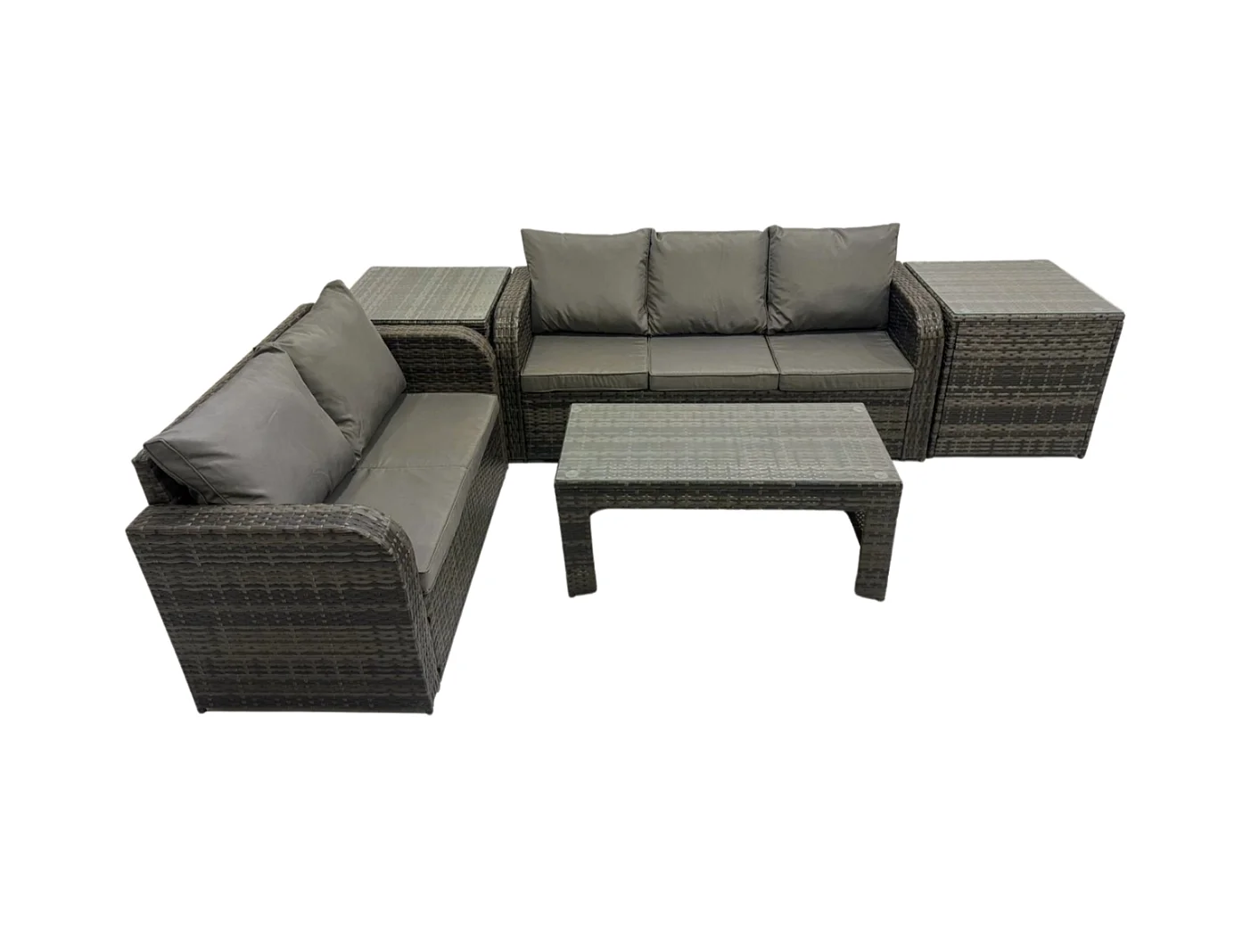 Hoher Rücken Rattan Gartenmöbel Sets mit Rechteckiger Couchtisch Liegestühle 2 Beistelltischen