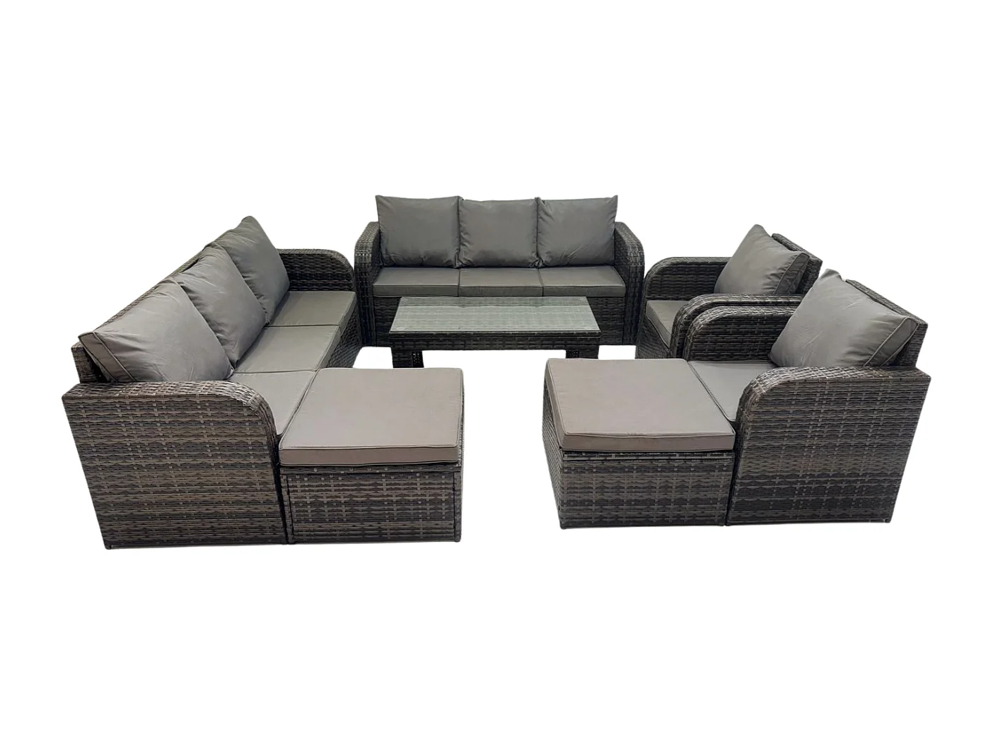 Hoher Rücken Rattan Gartenmöbel Sets mit Rechteckiger Couchtisch Liegestühle 2 hohen Hockern