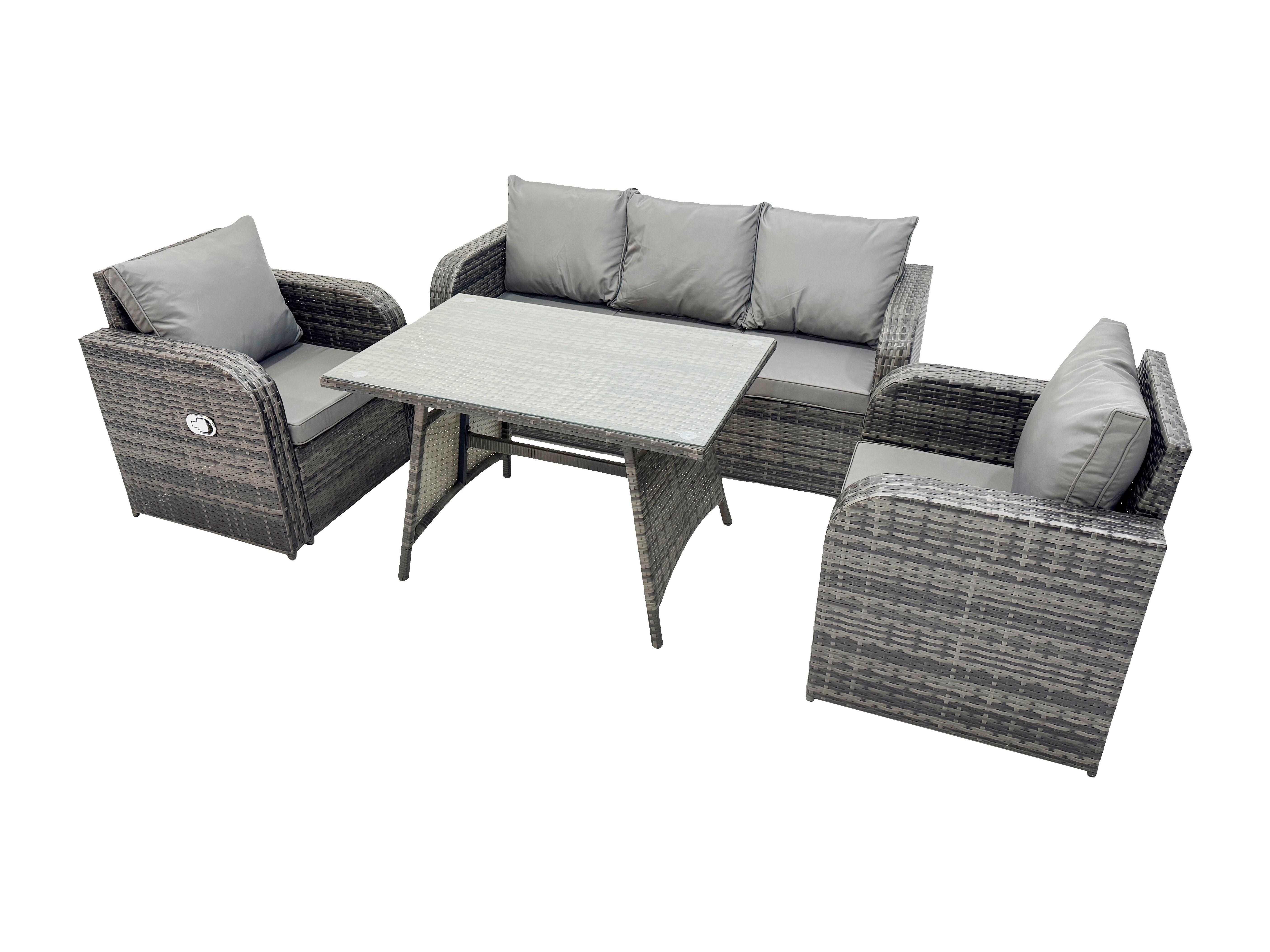 Hoher Rücken Rattan Gartenmöbel Sets mit Rechteckiger Esstisch Liegestühle 3-Sitzer Sofa