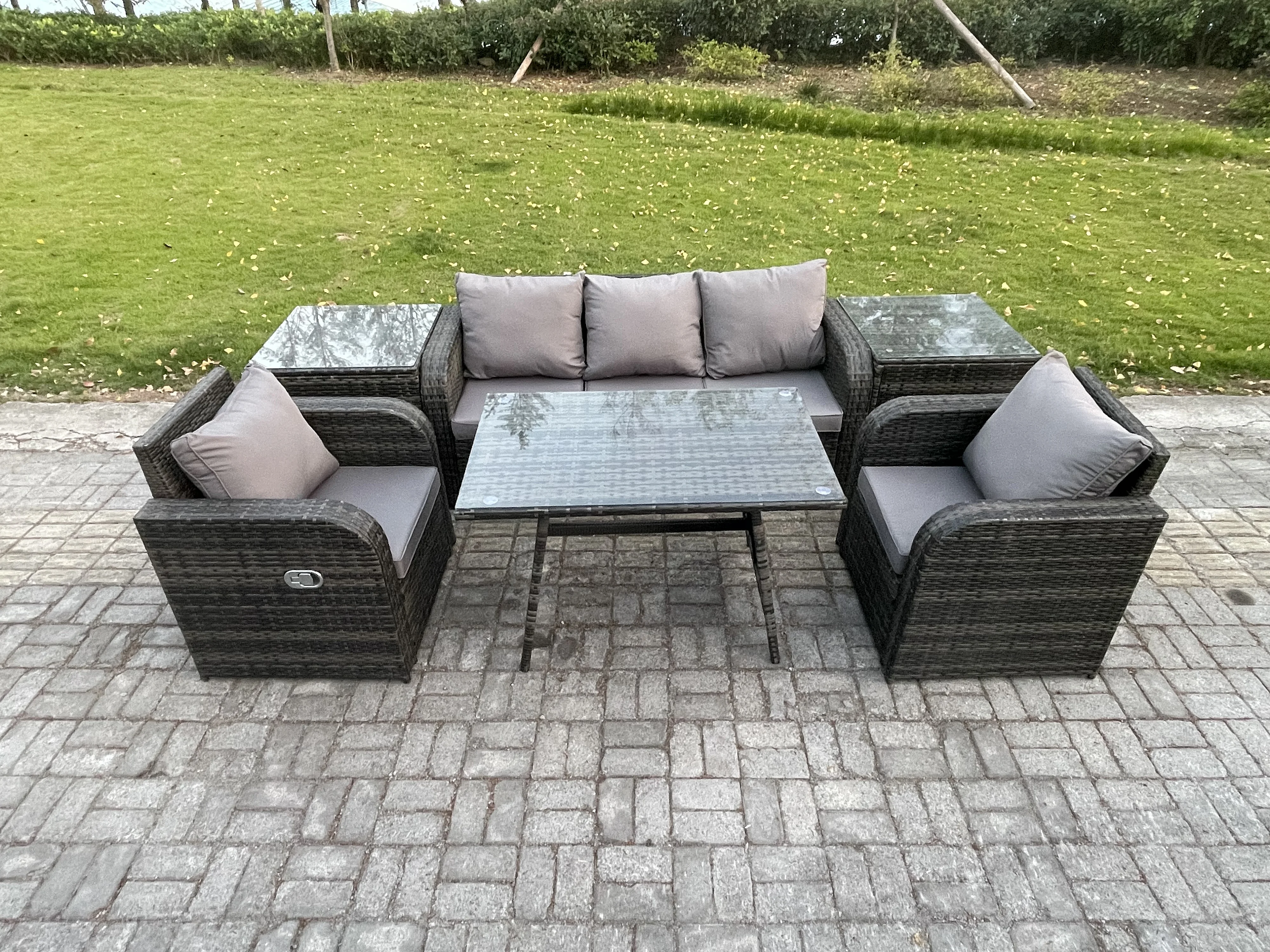 Hoher Rücken Rattan Gartenmöbel Sets mit Rechteckiger Esstisch Liegestühle 3-Sitzer Sofa 2 Beistelltischen