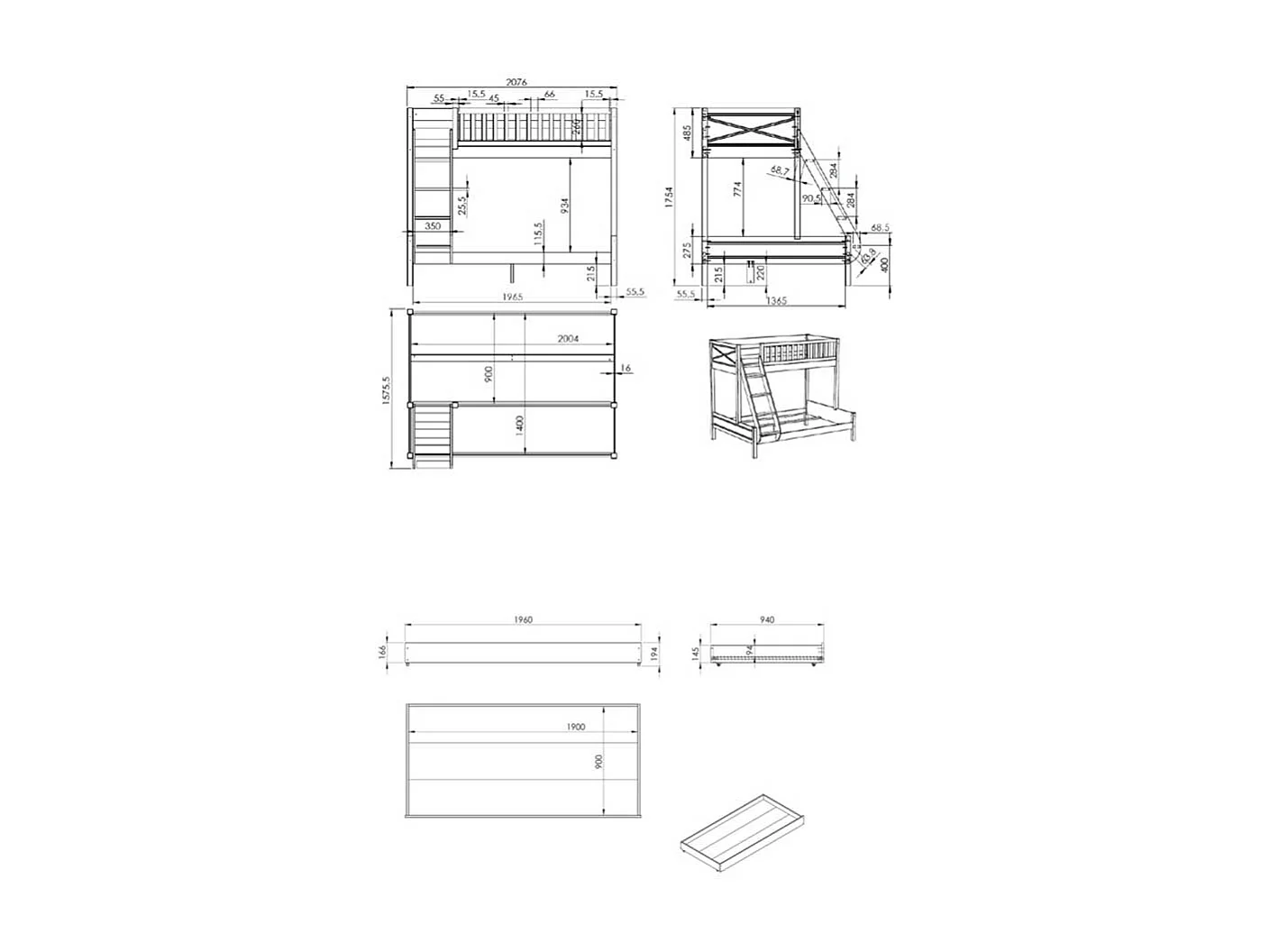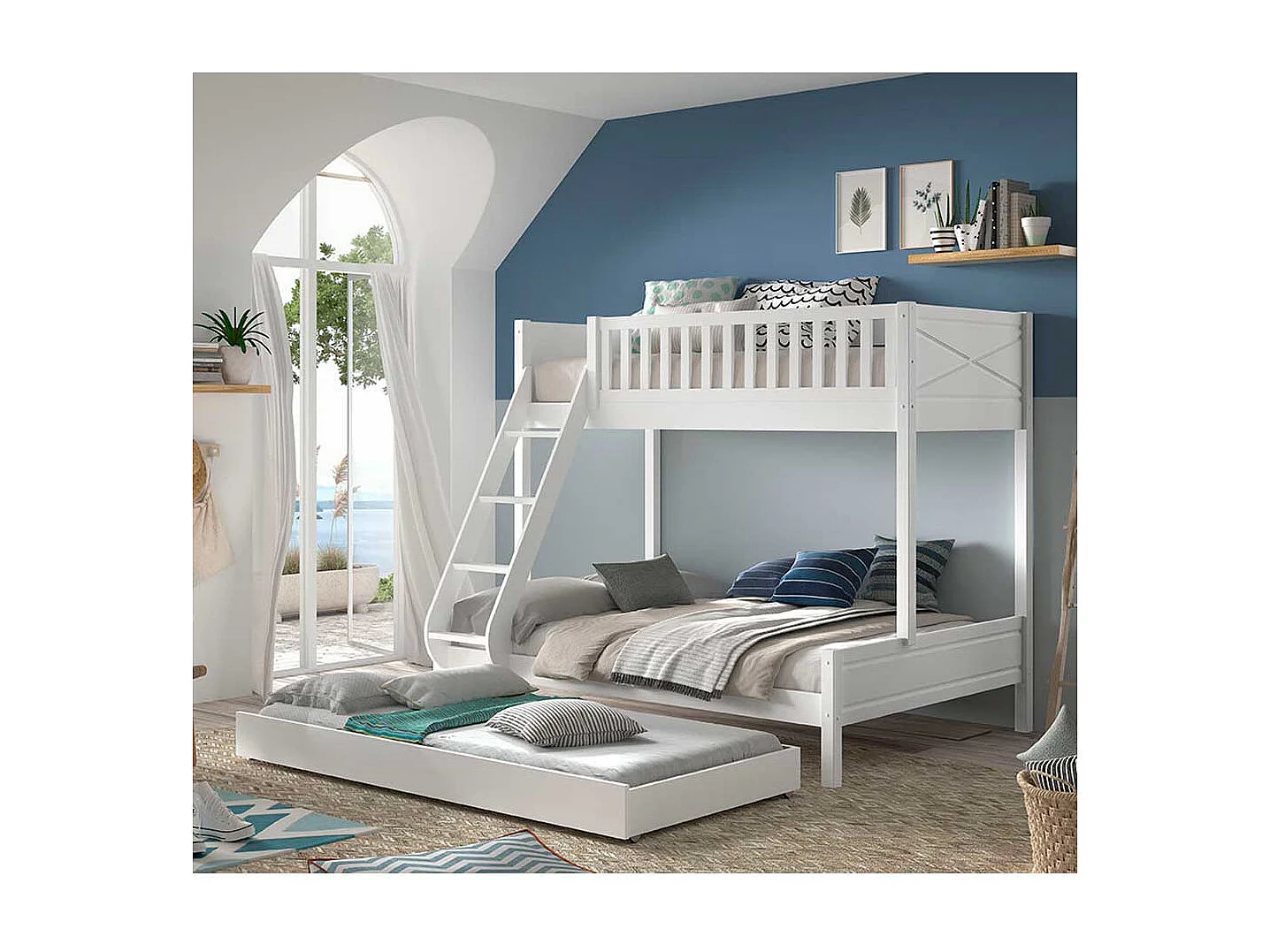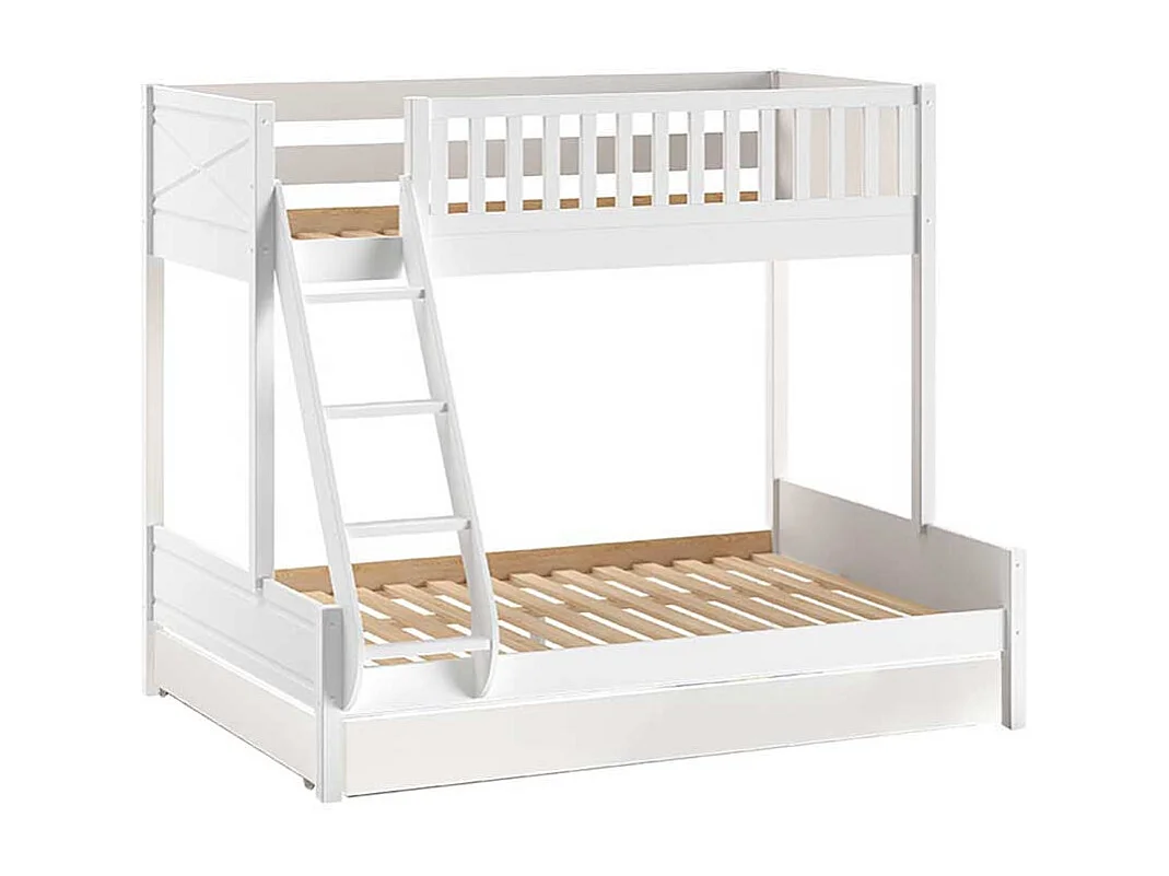 Hohes Etagenbett weiss im Skandi Design inklusive Bettkasten