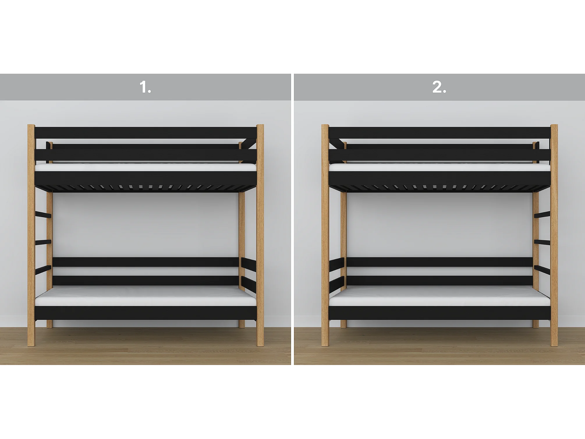 ETAGENBETT N03 Schwarz / Eiche Natur 120x180
