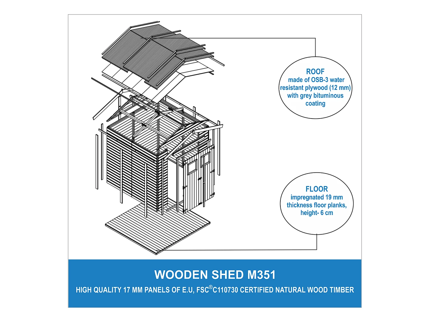 Holz Gartenschuppen MIT IMPRÄGNIERTEM BODEN - H228x222x233 cm/4,2 m² - TIMBELA M351+M351G