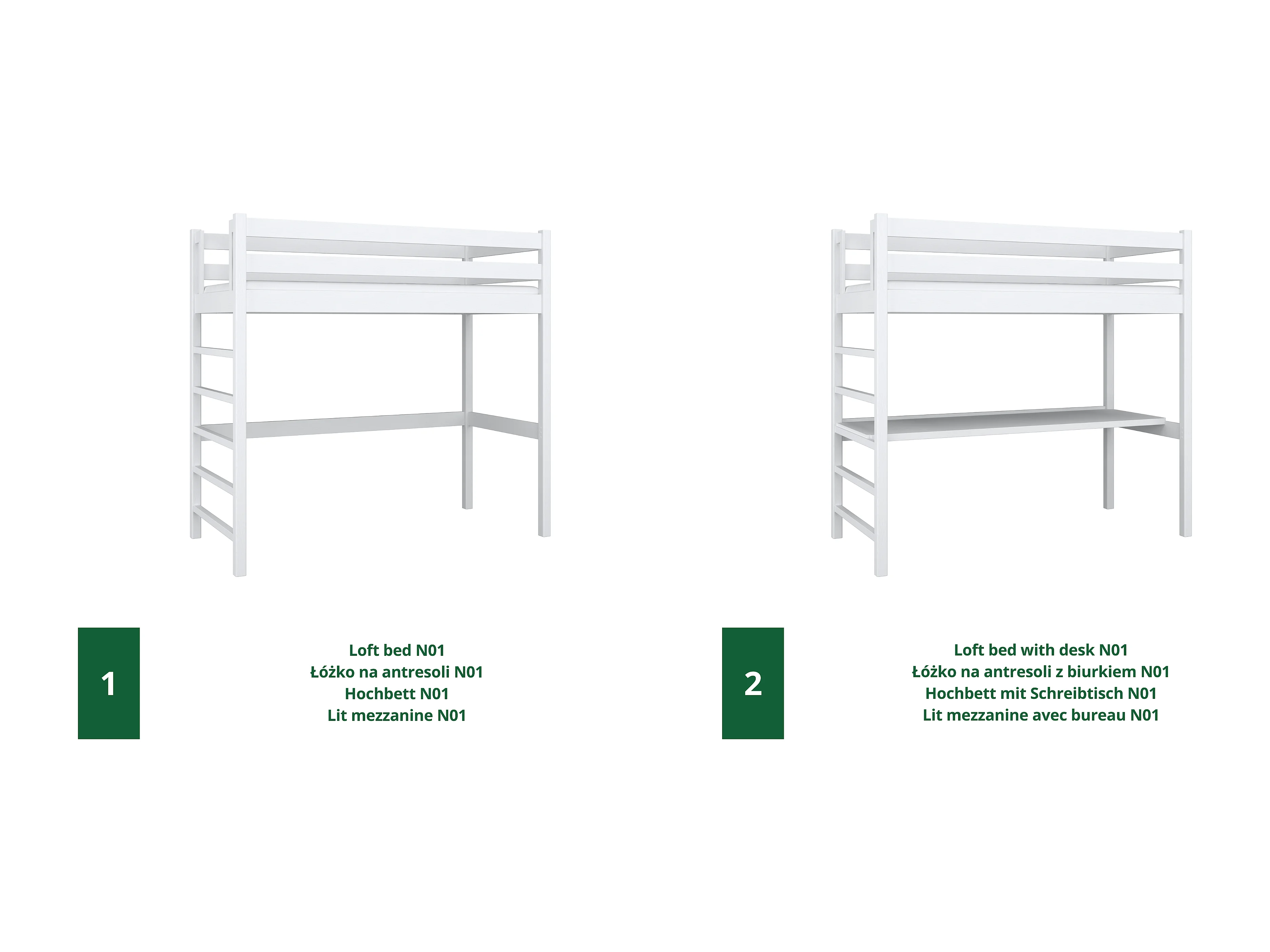 HOCHBETT N01 mit Schreibtisch Weiß 80x190