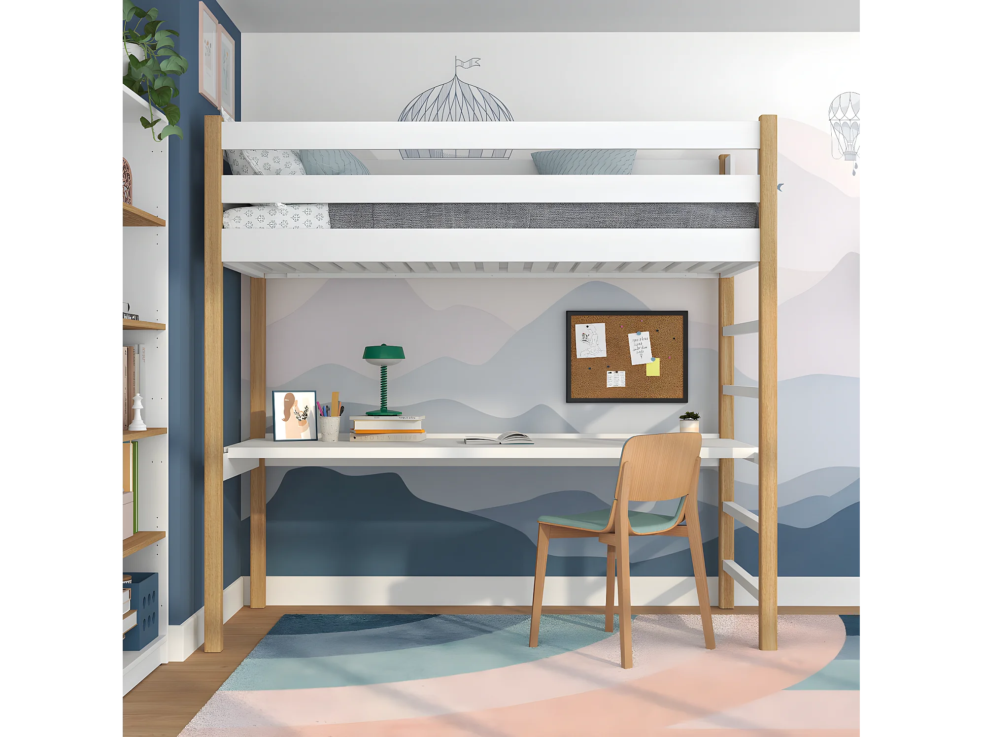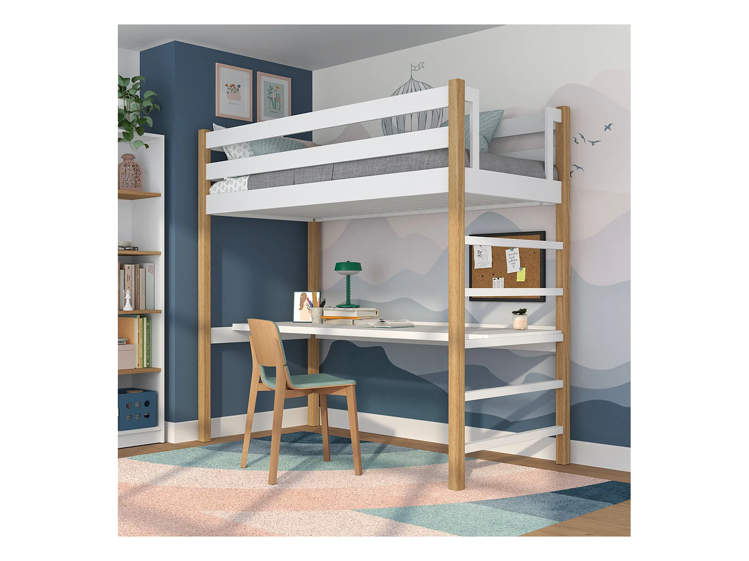 HOCHBETT N01 mit Schreibtisch Weiß / Eiche Natur 120x200