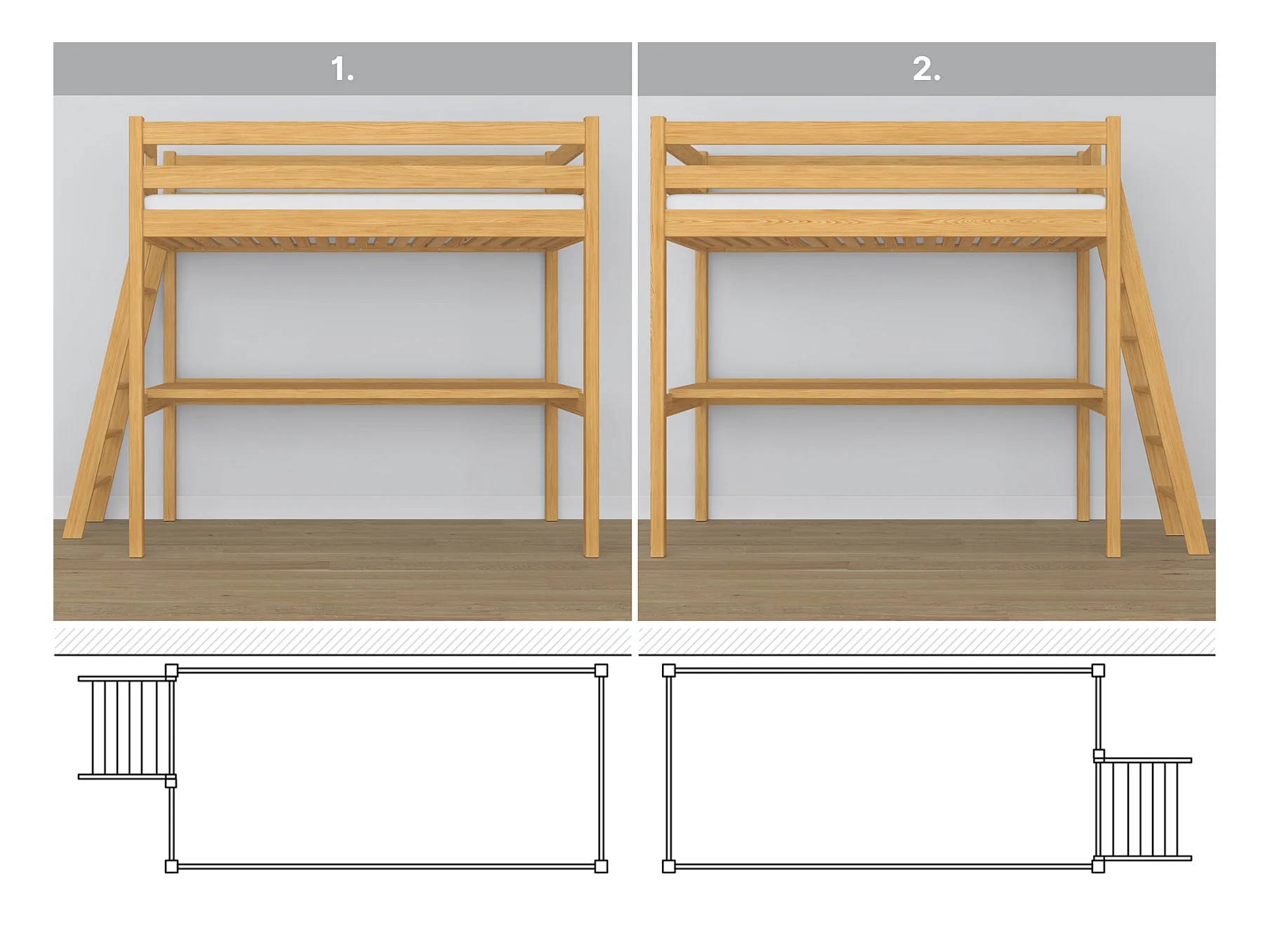 HOCHBETT N02 mit Schreibtisch Naturkiefer 120x180