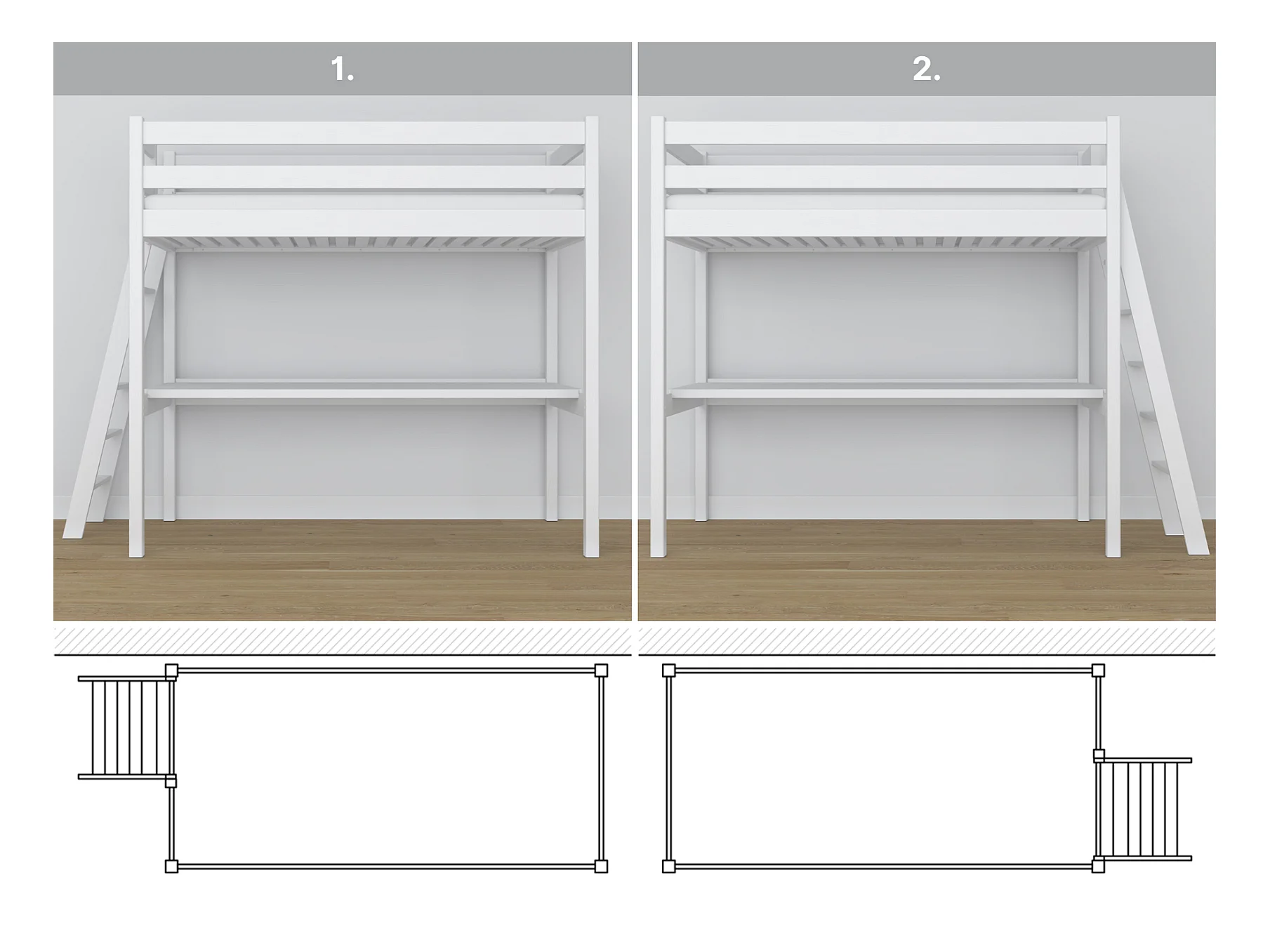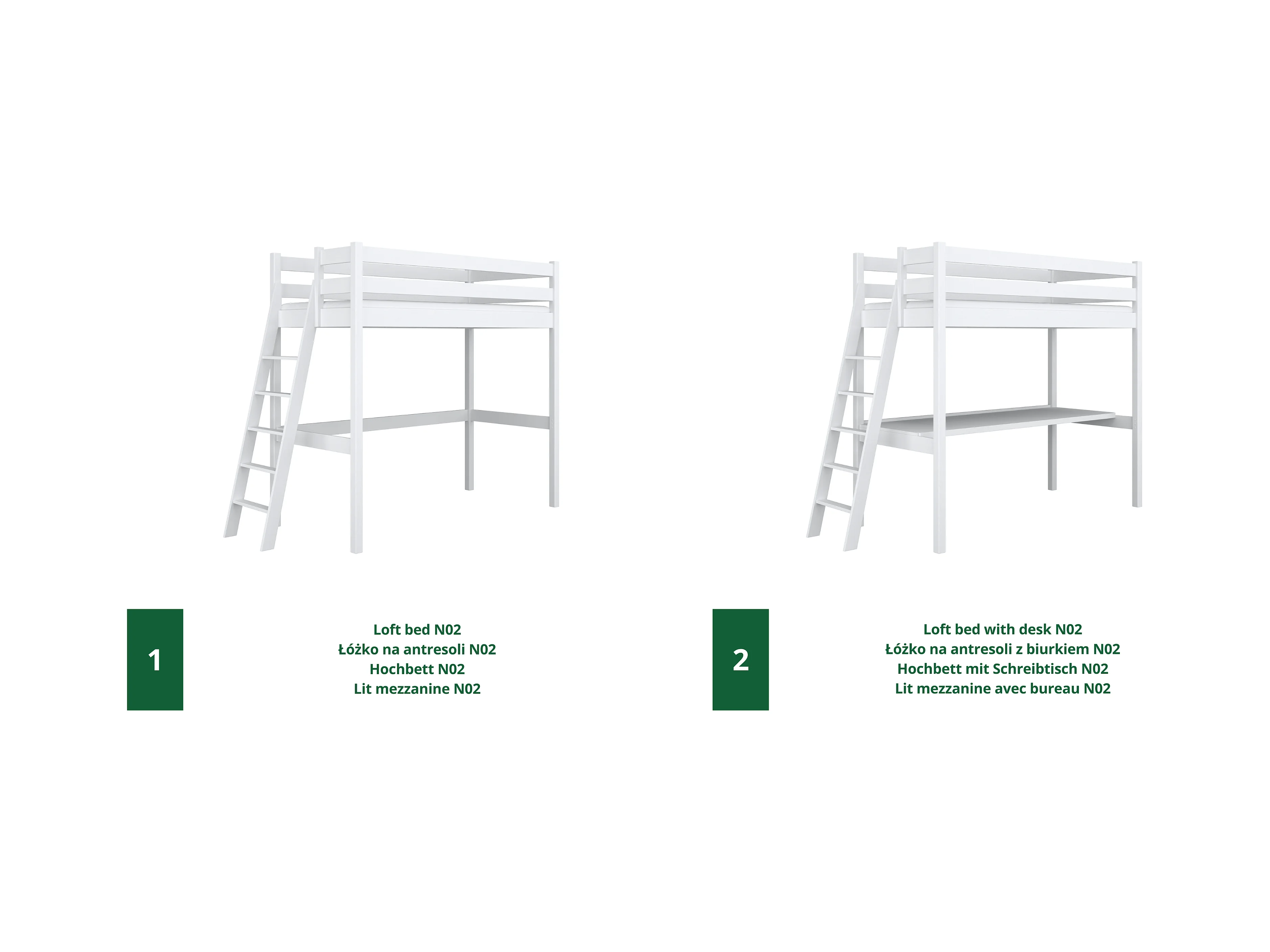 HOCHBETT N02 mit Schreibtisch Weiß 80x180