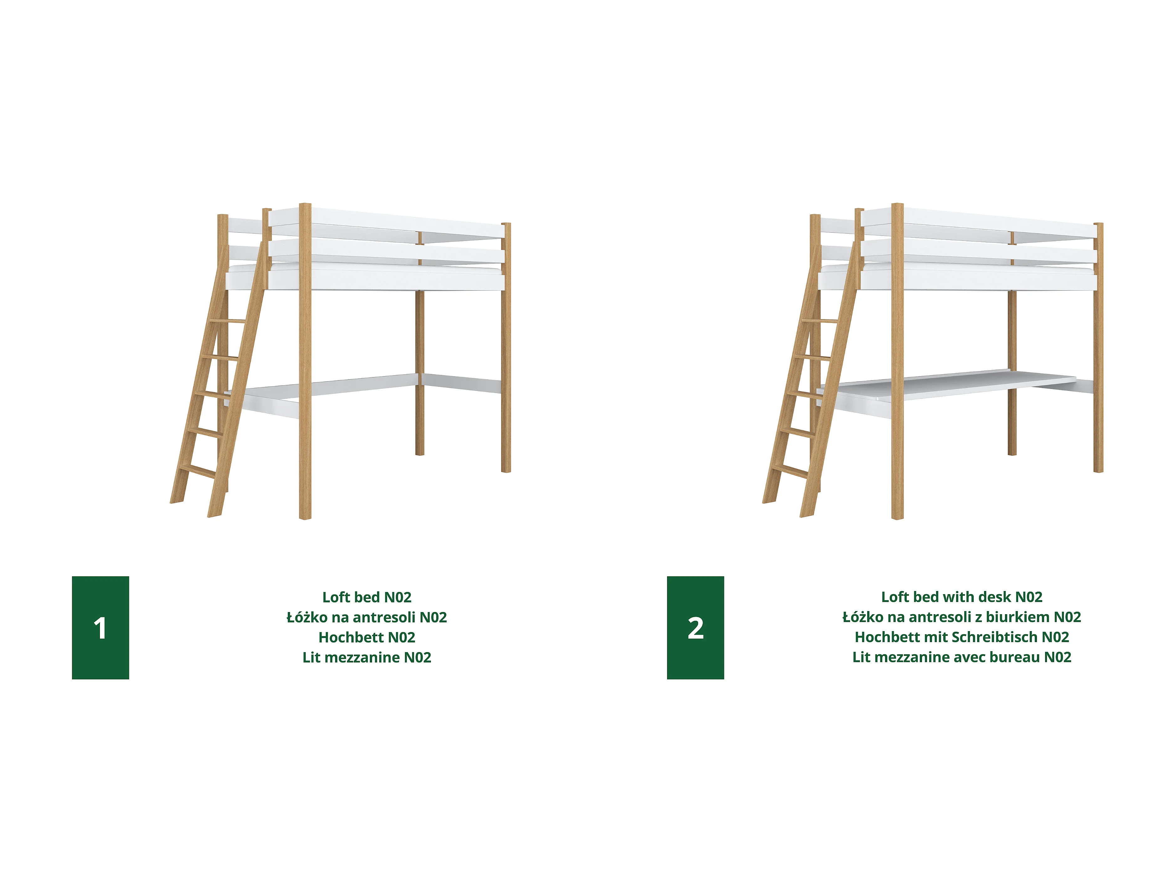 HOCHBETT N02 mit Schreibtisch Weiß / Eiche Natur 120x180