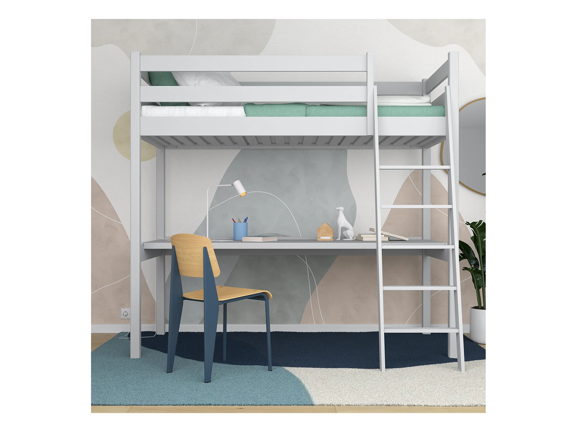 HOCHBETT N03 mit Schreibtisch Grau 100x190