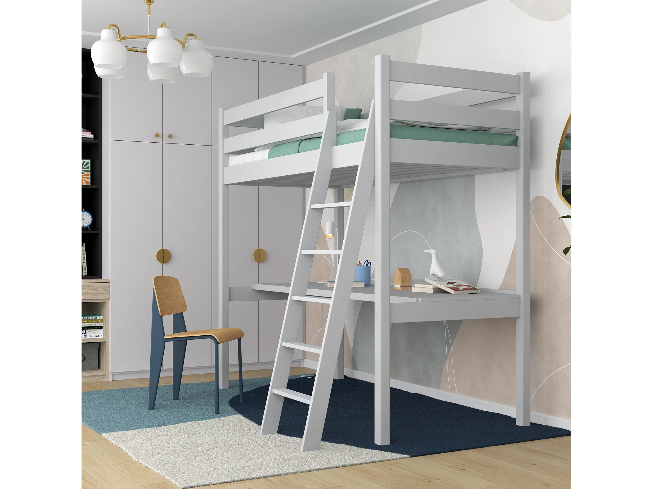 HOCHBETT N03 mit Schreibtisch Grau 80x190