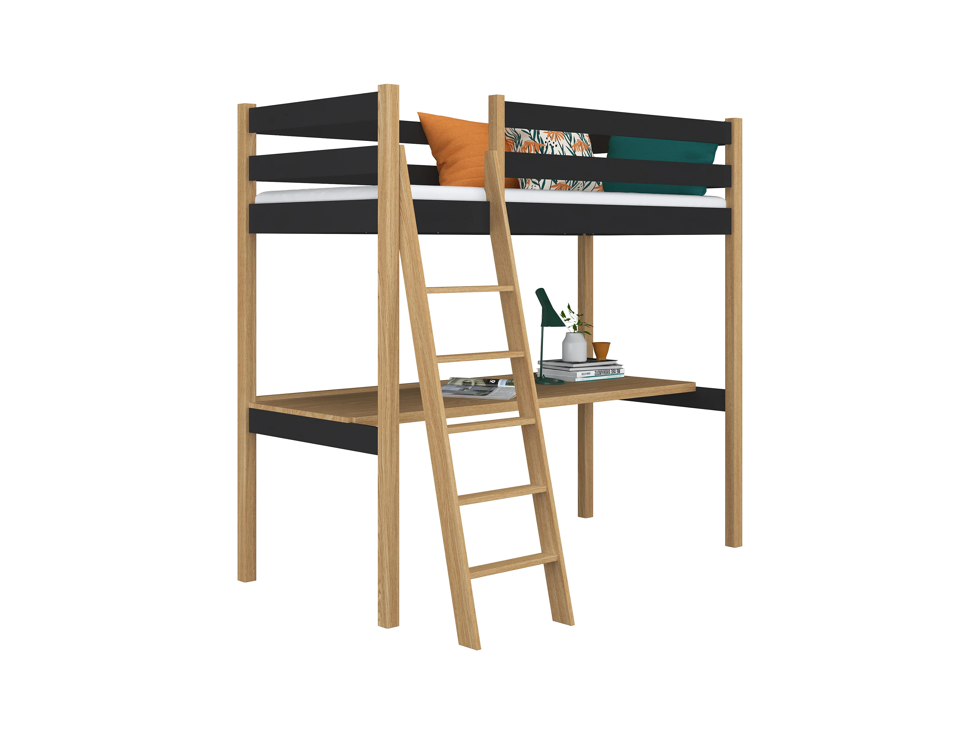 HOCHBETT N03 mit Schreibtisch Schwarz / Eiche Natur 100x180