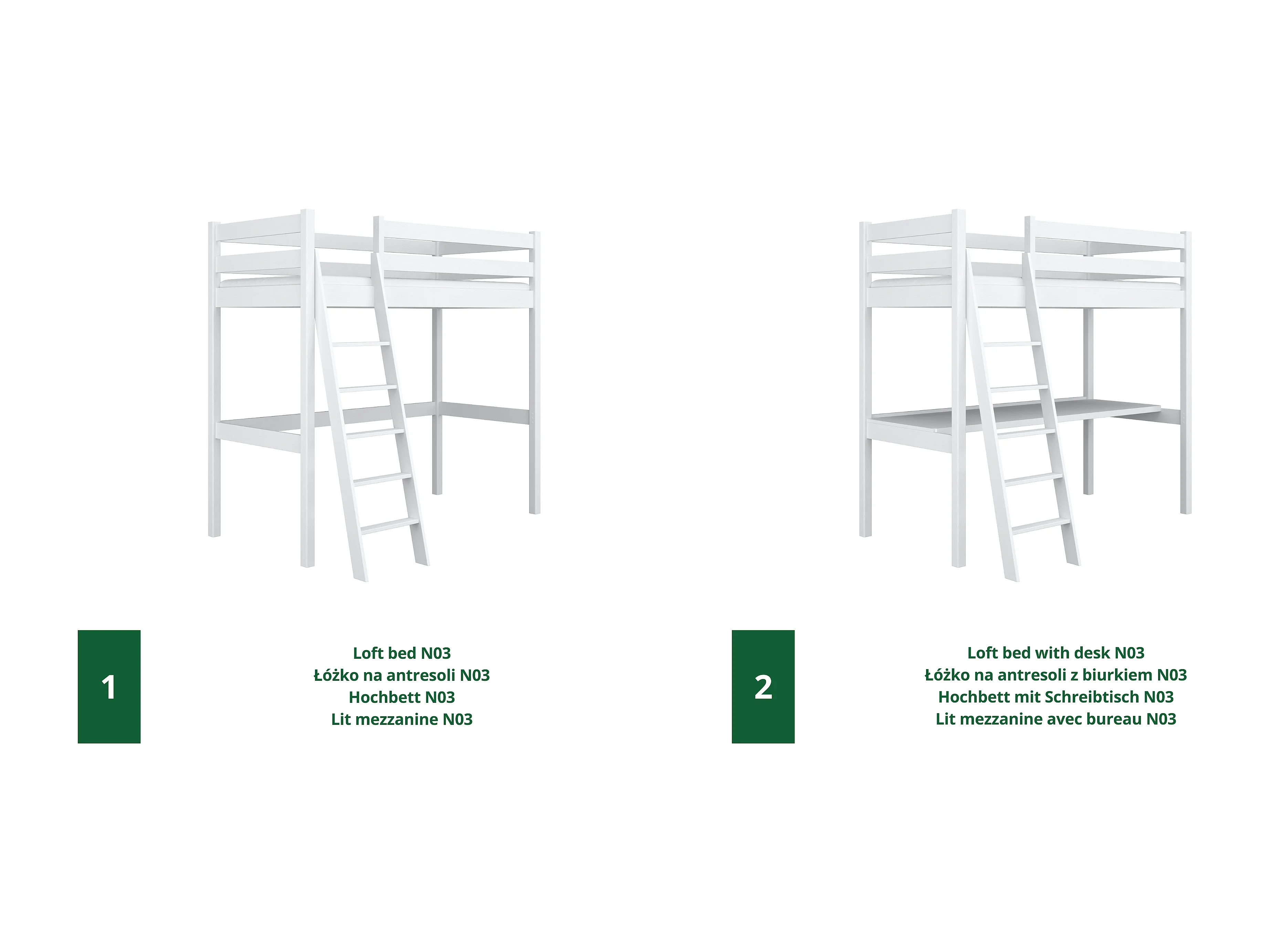 HOCHBETT N03 mit Schreibtisch Weiß 80x190