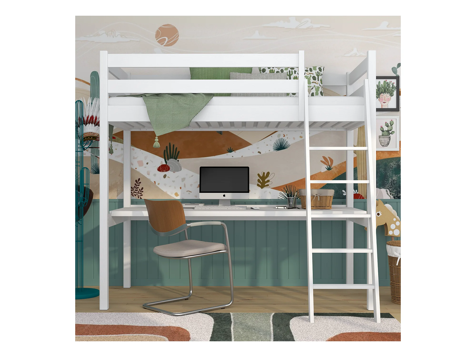 HOCHBETT N03 mit Schreibtisch Weiß 80x200