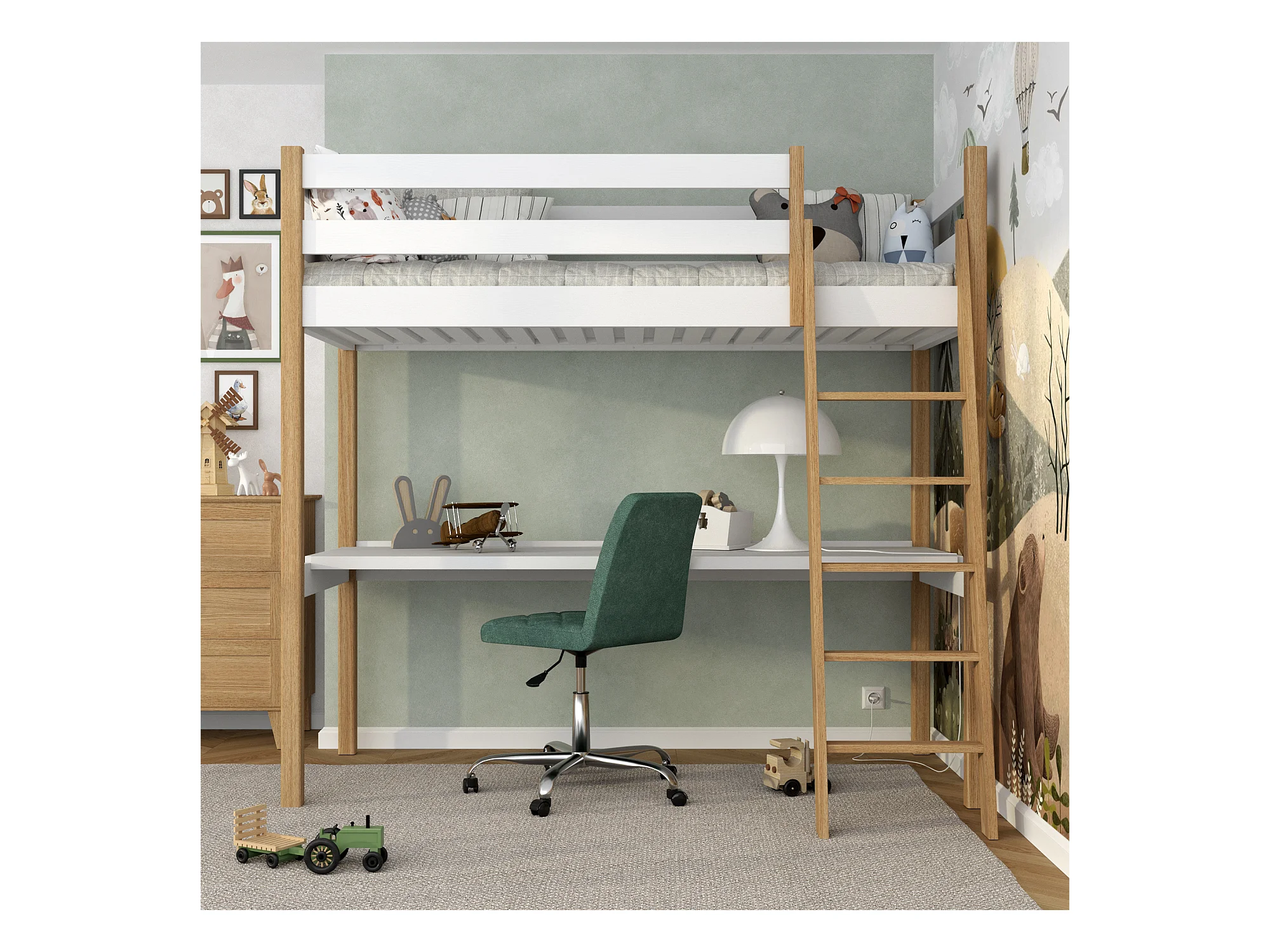 HOCHBETT N03 mit Schreibtisch Weiß / Eiche Natur 90x180