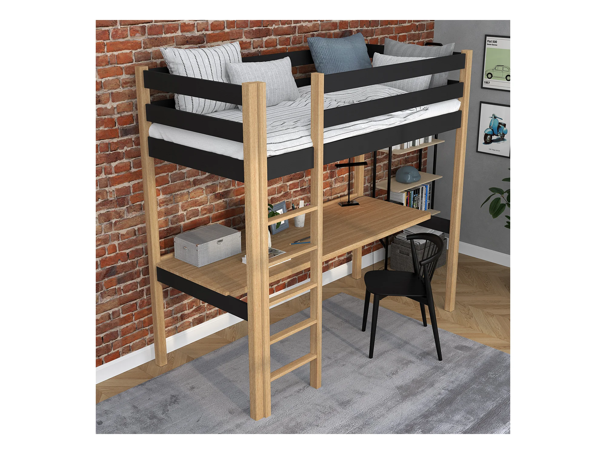 HOCHBETT N05 mit Schreibtisch Schwarz / Eiche Natur 100x200