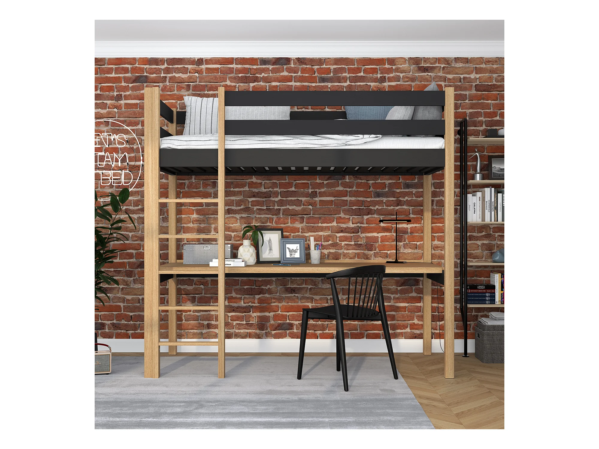 HOCHBETT N05 mit Schreibtisch Schwarz / Eiche Natur 90x190
