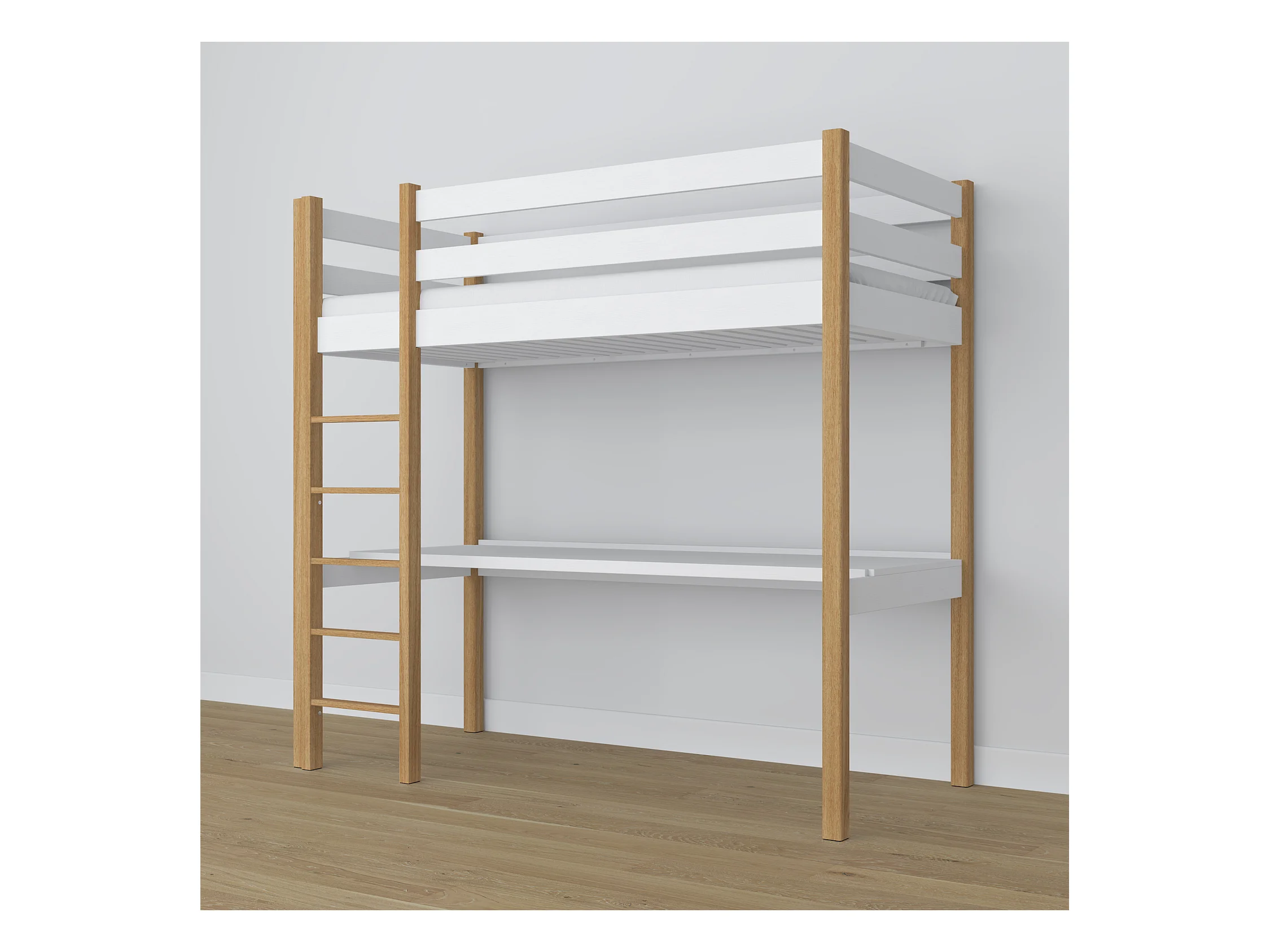 HOCHBETT N05 mit Schreibtisch Weiß / Eiche Natur 100x180