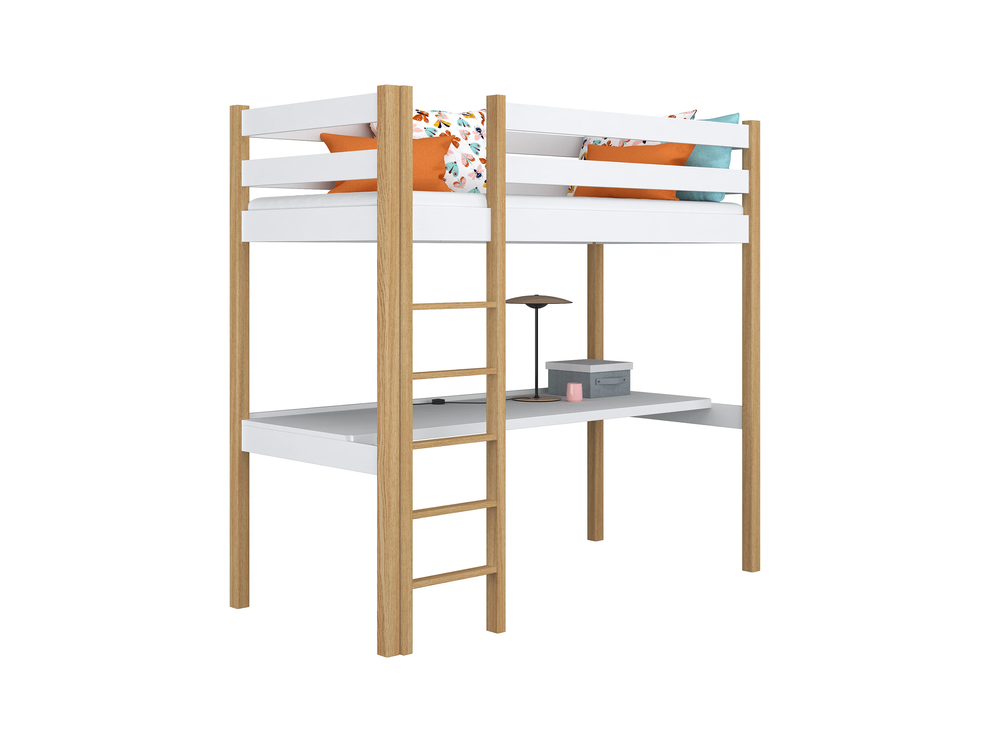HOCHBETT N05 mit Schreibtisch Weiß / Eiche Natur 100x200