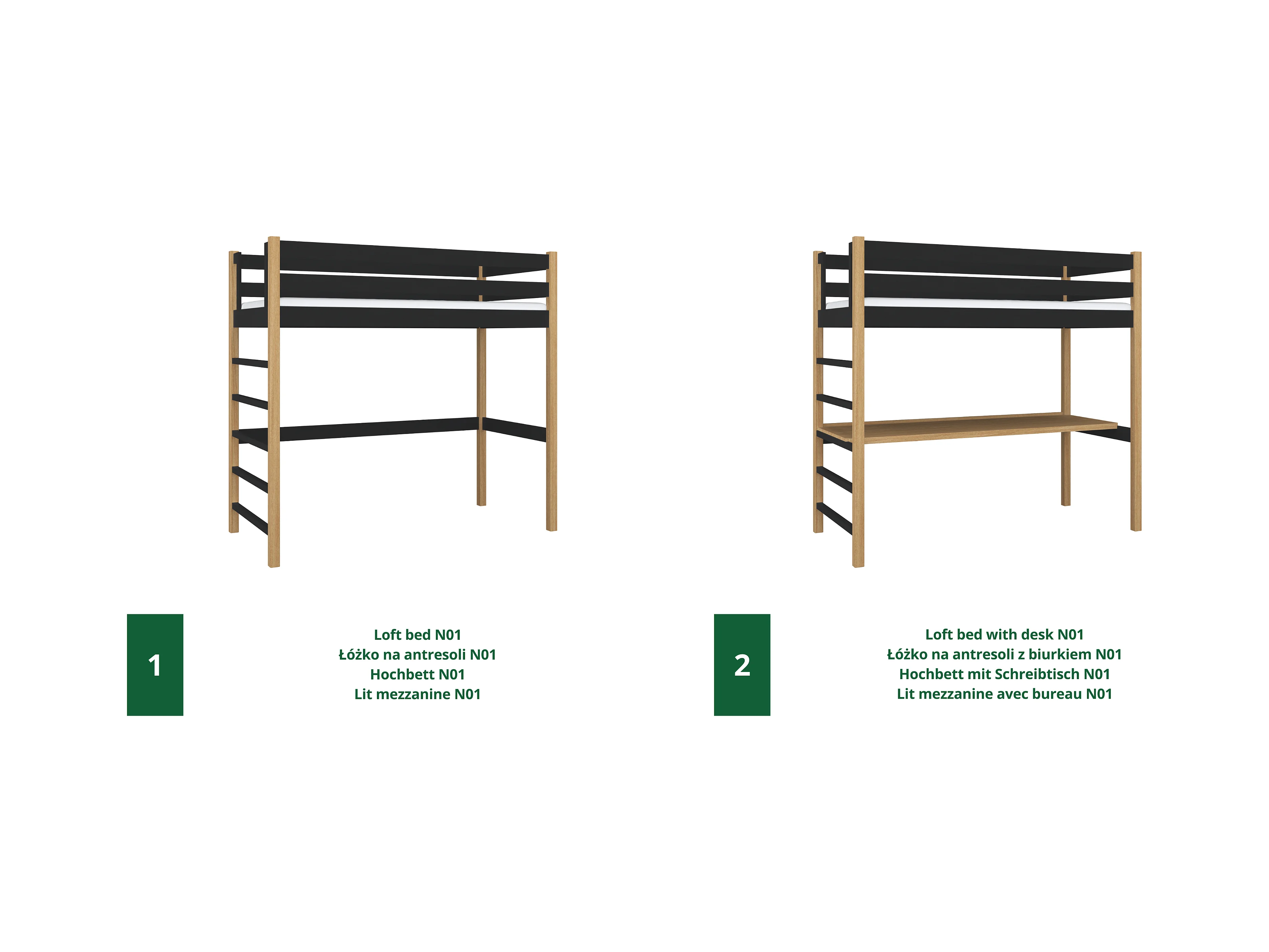 HOCHBETT N01 Schwarz / Eiche Natur 90x180