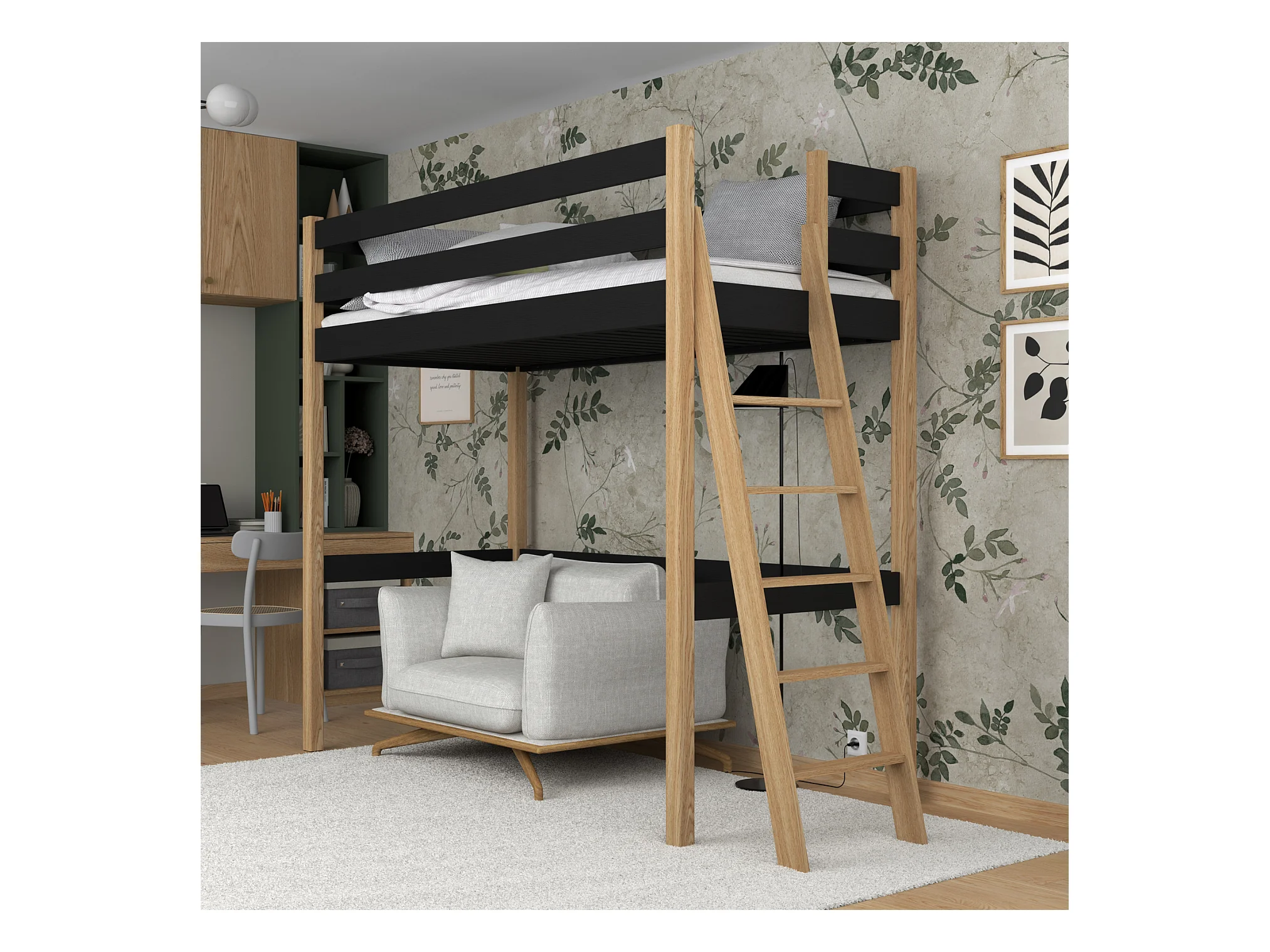 HOCHBETT N02 Schwarz / Eiche Natur 120x200