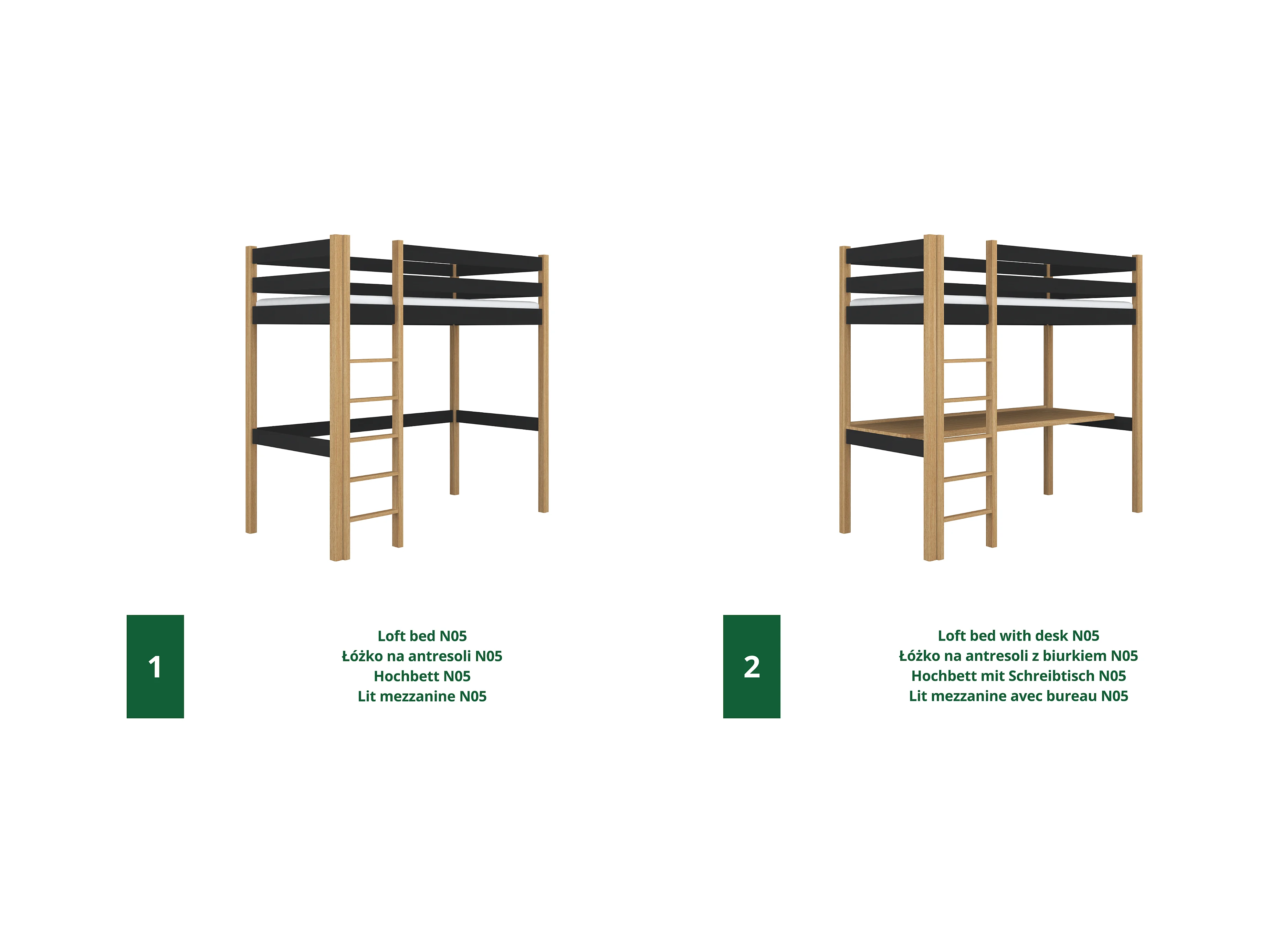 HOCHBETT N05 Schwarz / Eiche Natur 80x190