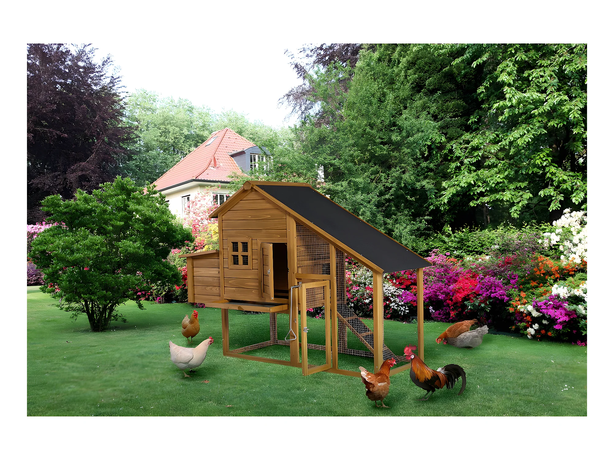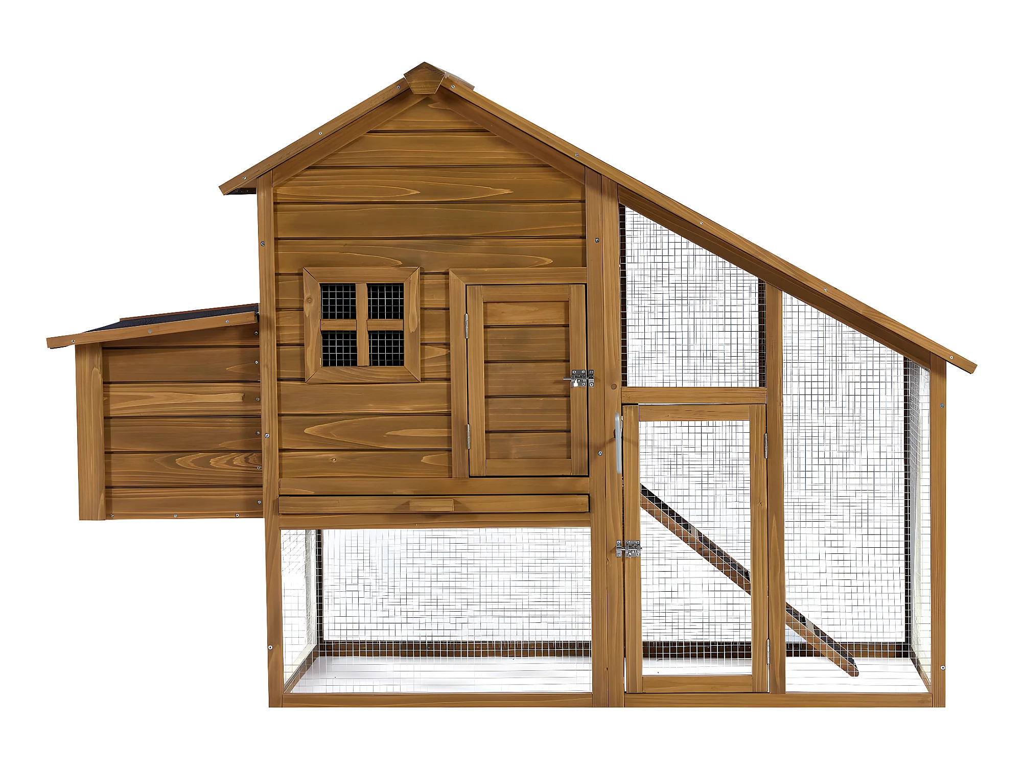 Holz-Hühnerstall "Prinzessin" mit Legenest und geräumigem Gittergehege - Braun
