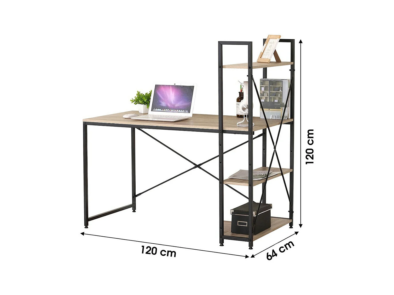 Holz- und Metall-Schreibtisch HOLBORN mit Regalen, Eichenfarbe und Schwarz