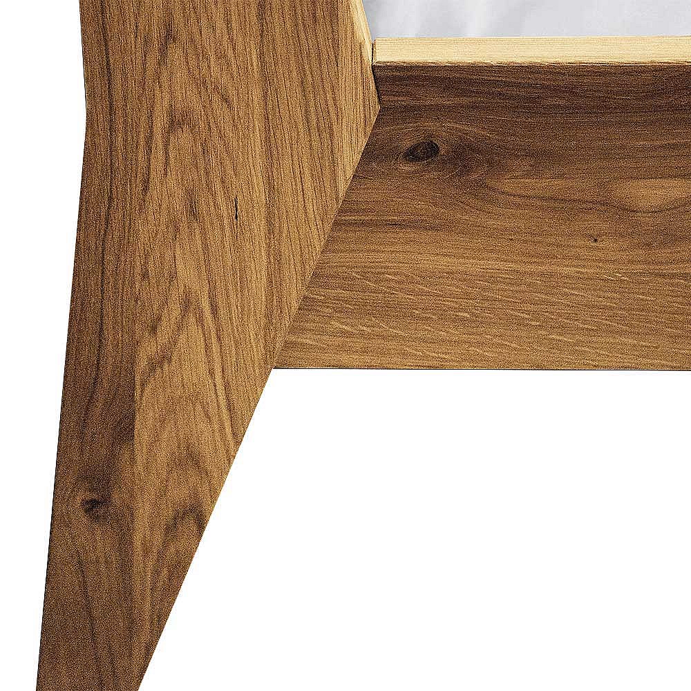 Holzbett aus Wildeiche Massivholz gepolstertem Kopfteil in Dunkelbraun